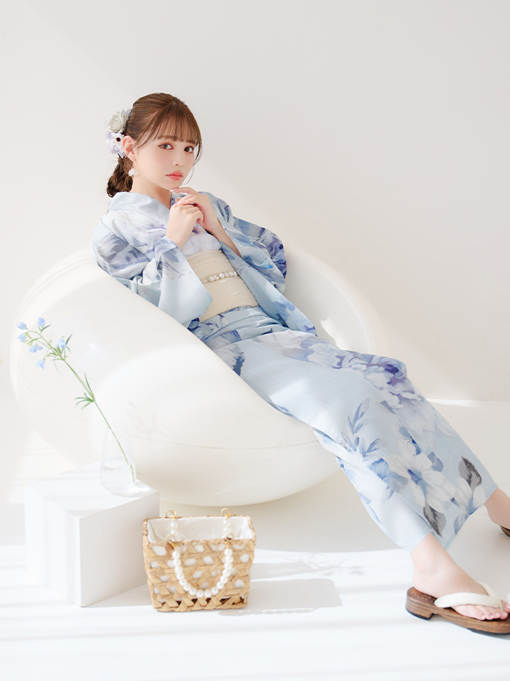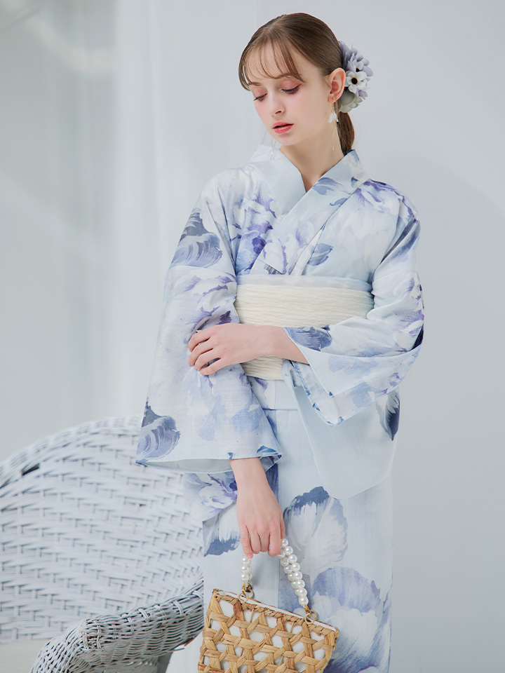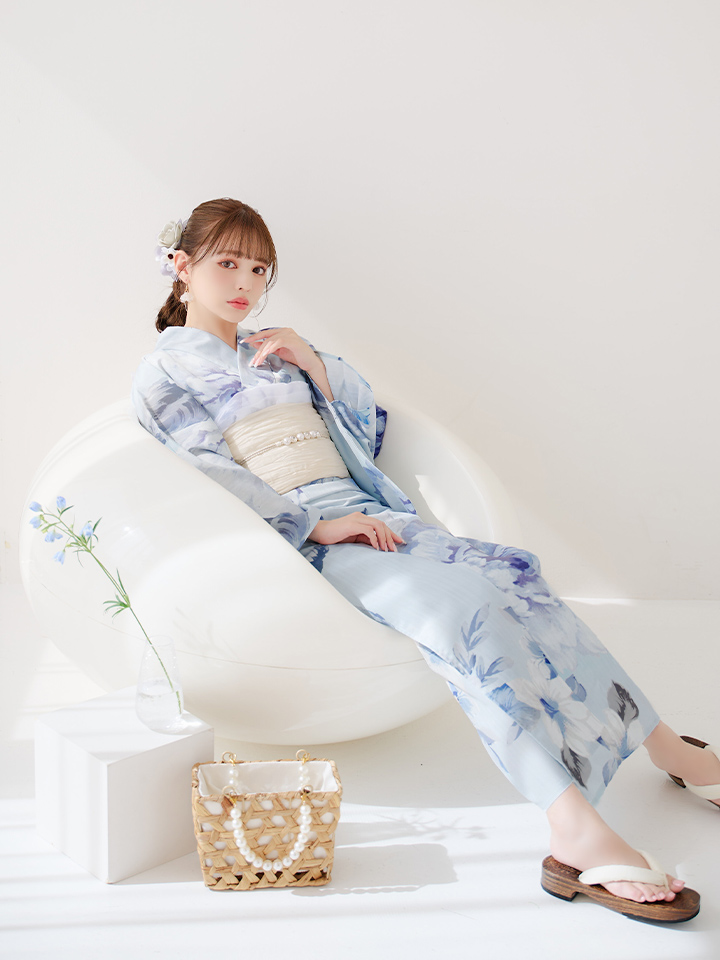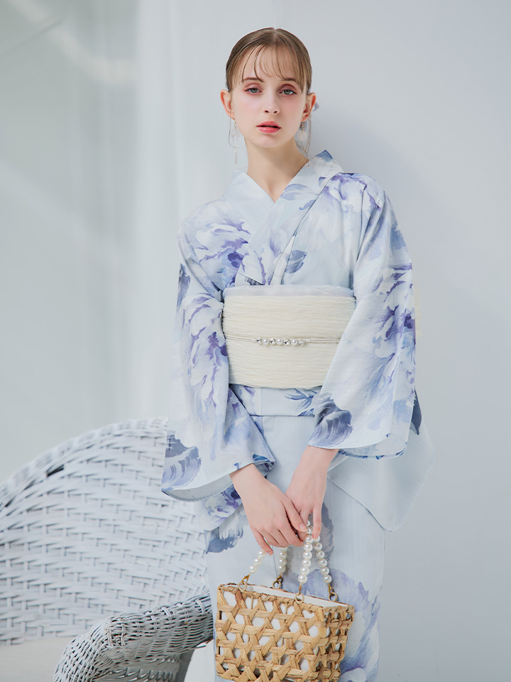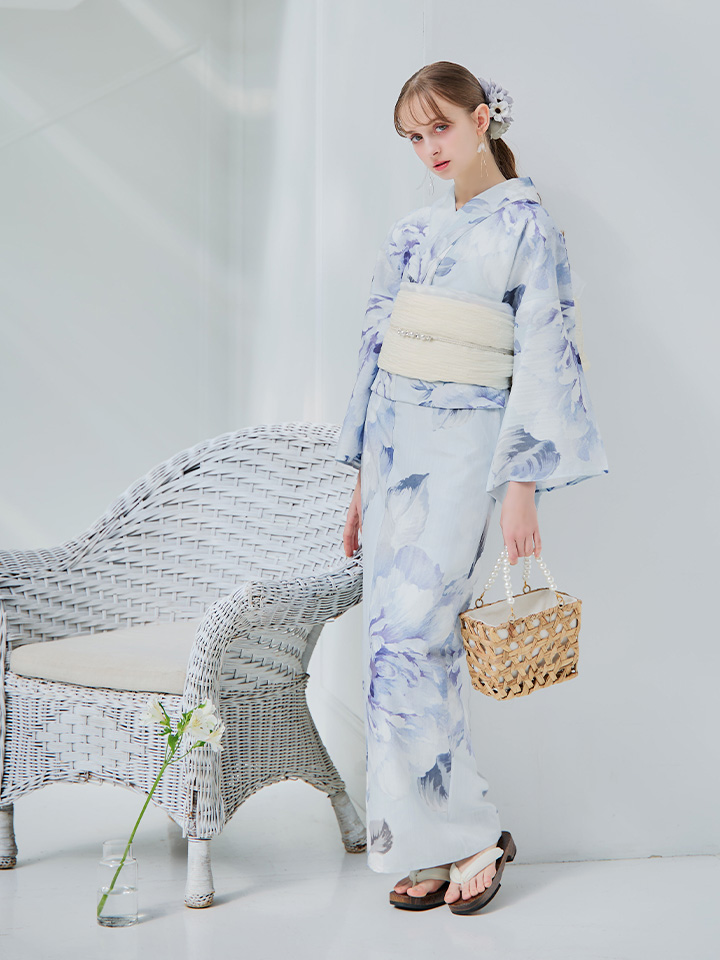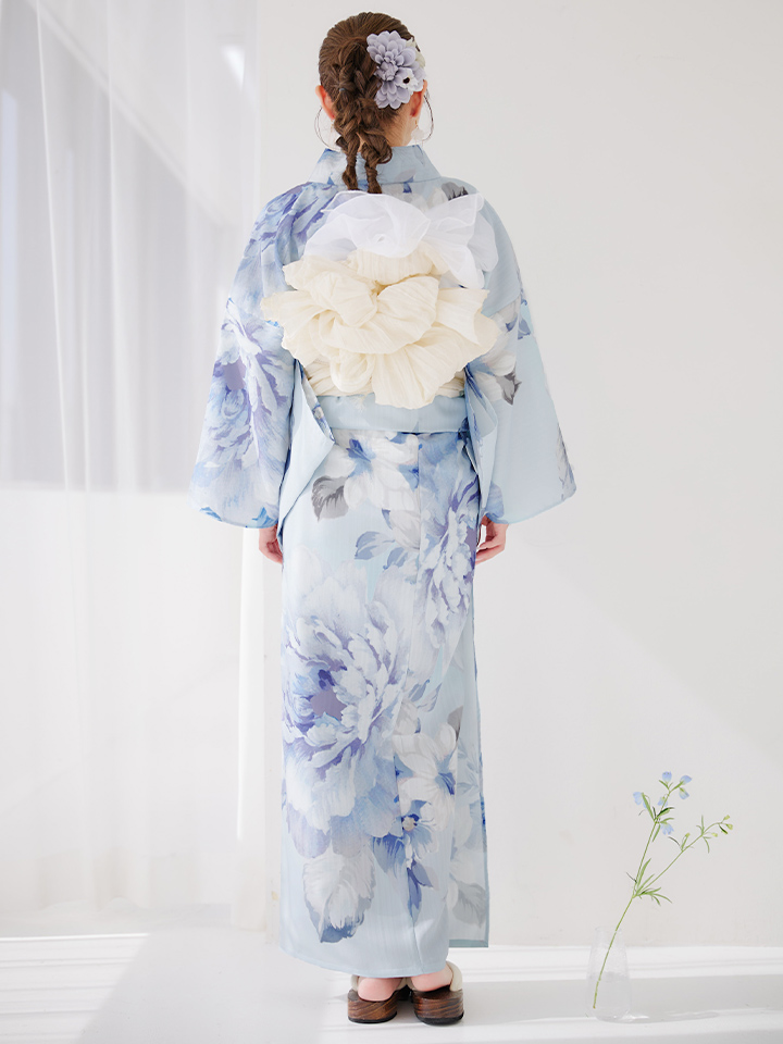 【即日発送】アイスブルー牡丹浴衣 【浴衣3点セット 浴衣/帯/下駄】 [YMT] [Y-9115-nz-dzh-BL-F-25PO]