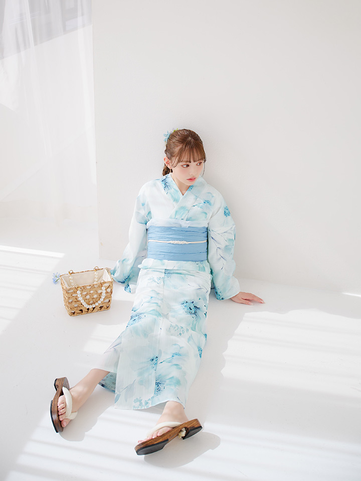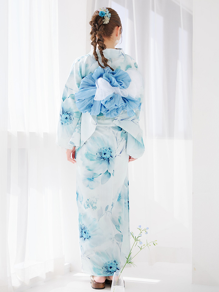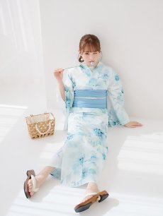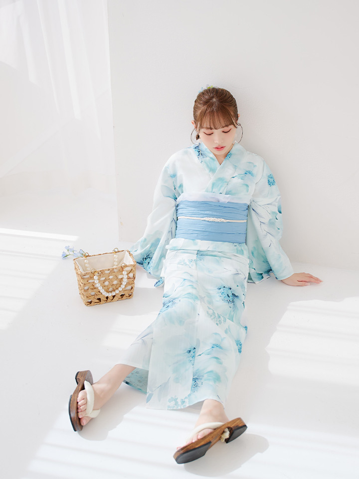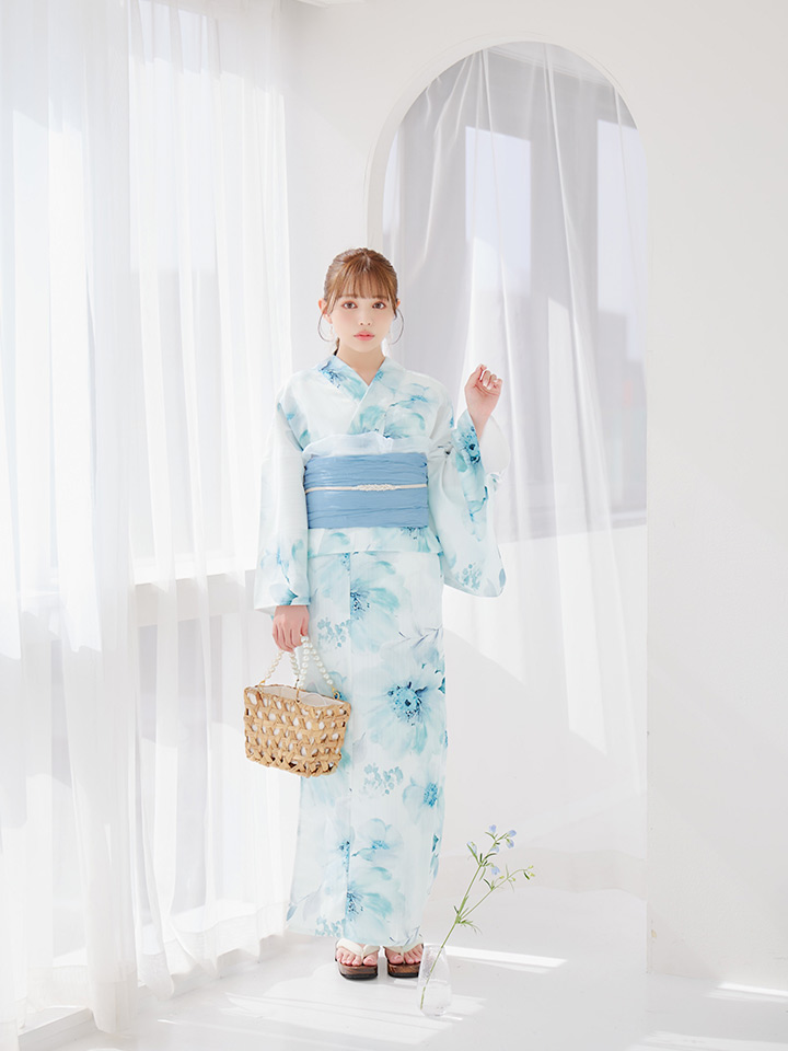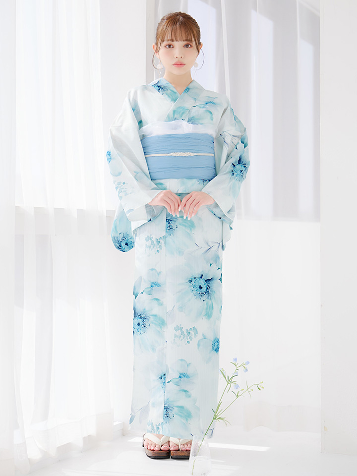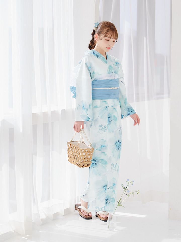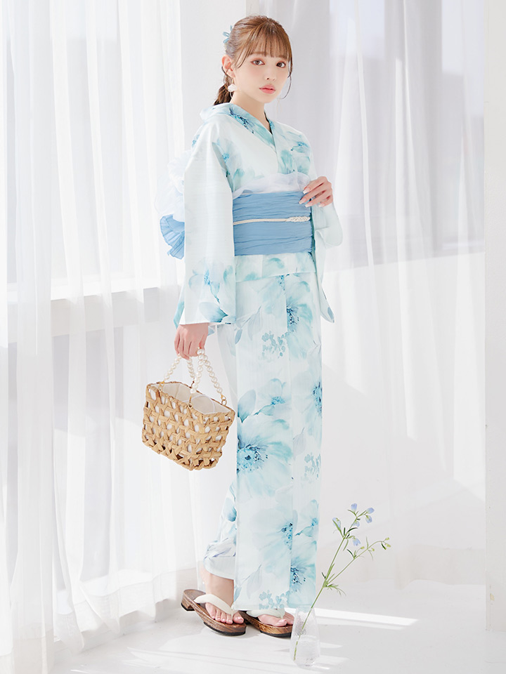 【即日発送】ブルーグレイニュアンスフラワー浴衣 【浴衣3点セット 浴衣/帯/下駄】 [YMT] [Y-9111-nz-dzh-BL-F-25PO]