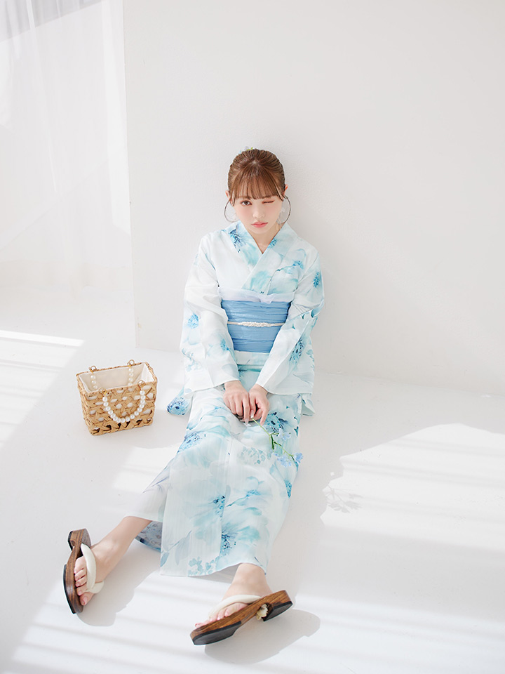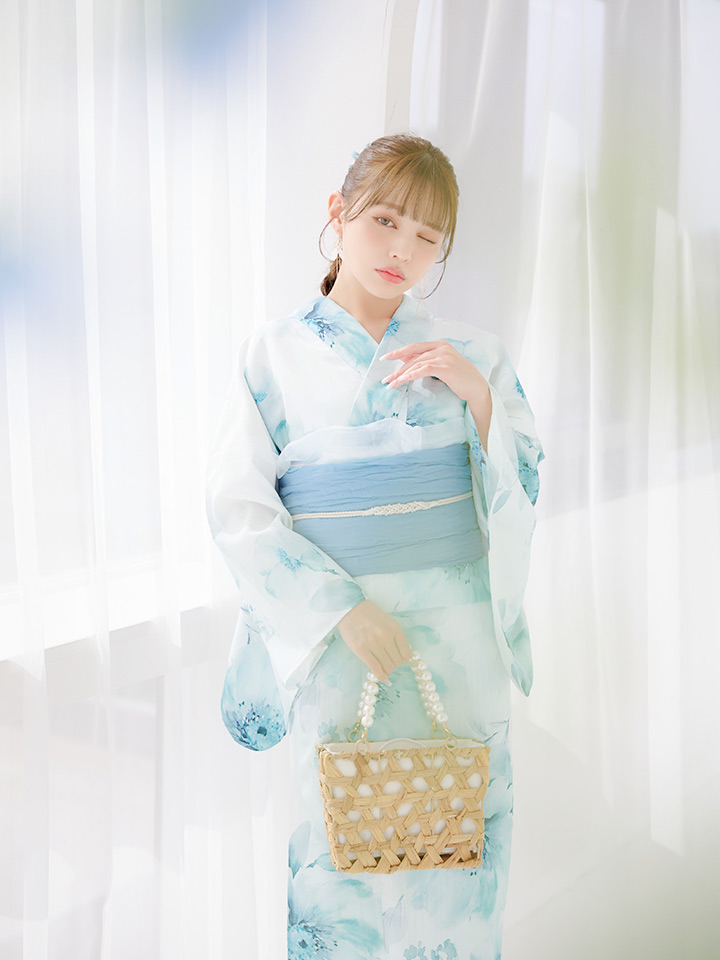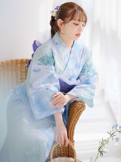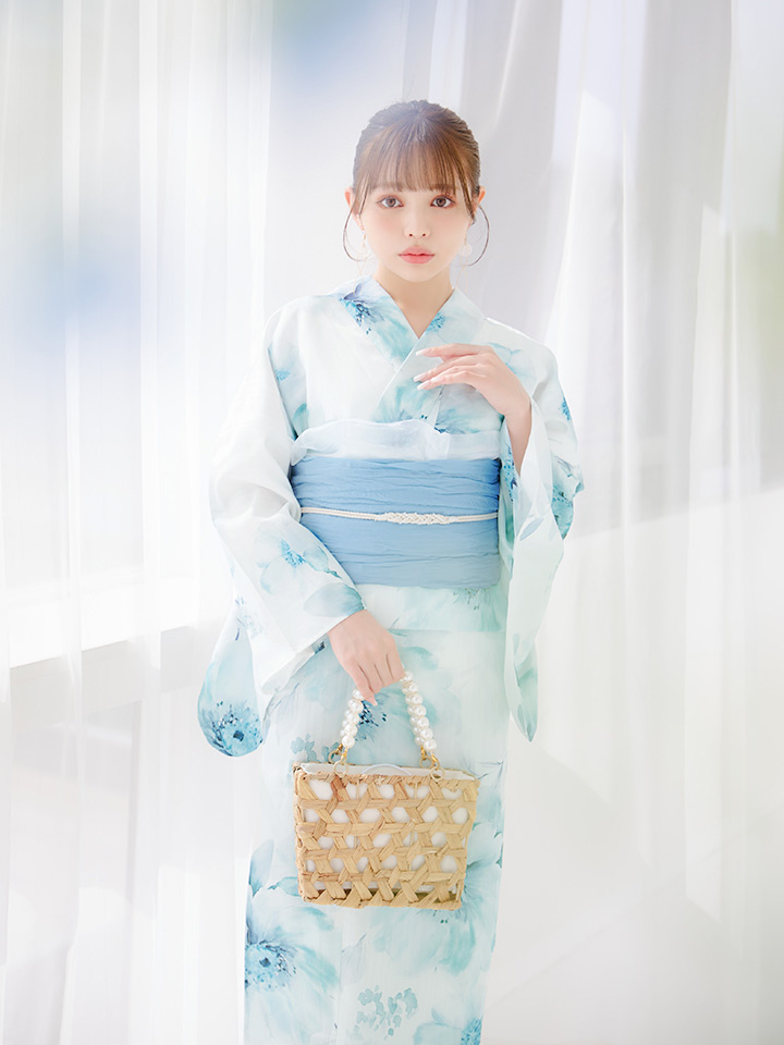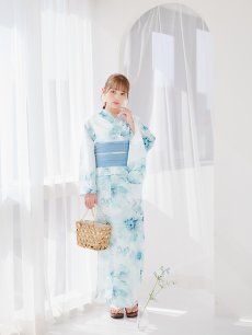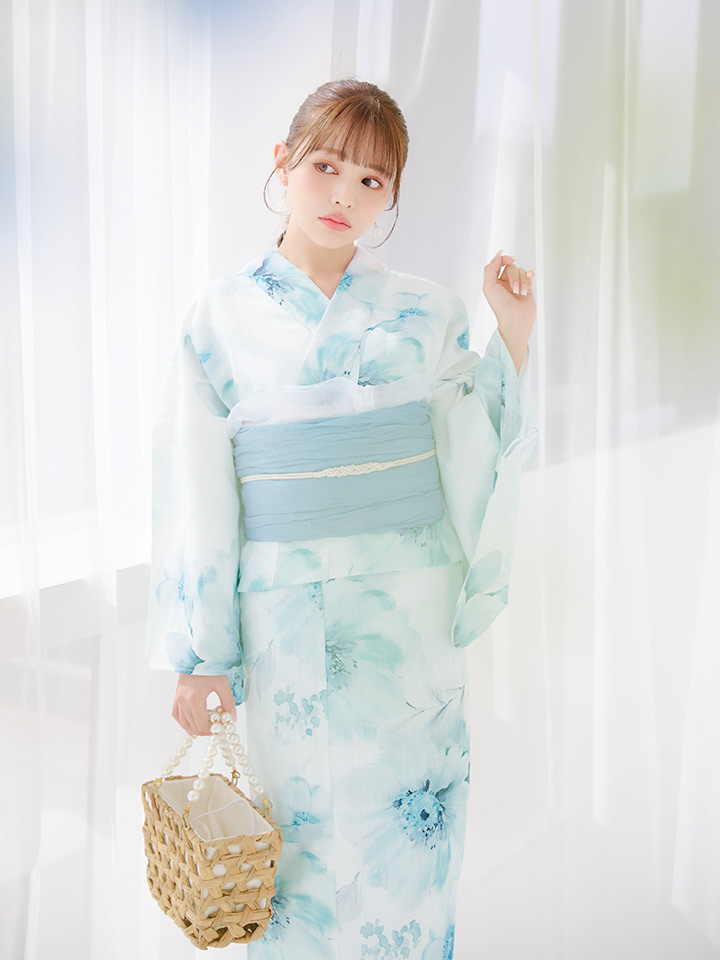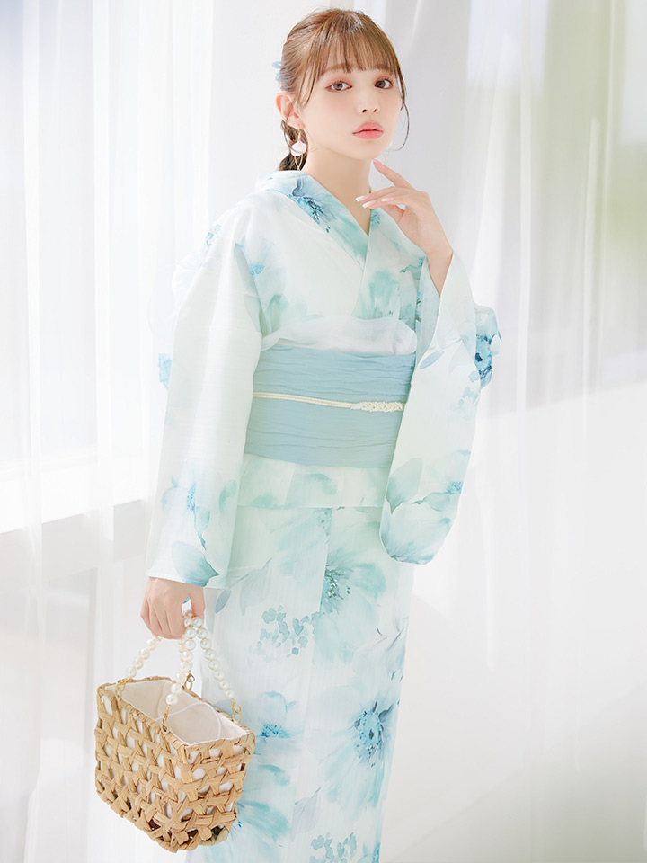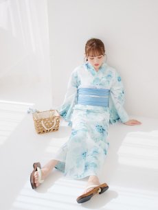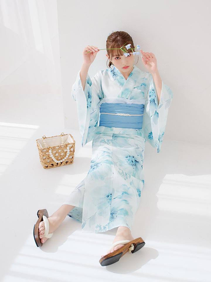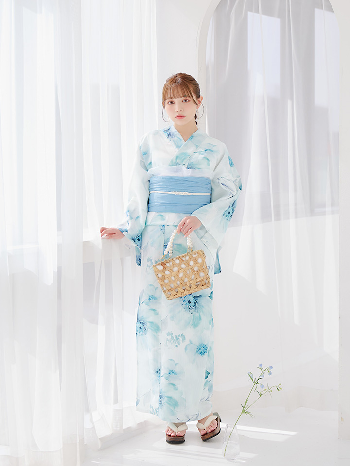 【即日発送】ブルーグレイニュアンスフラワー浴衣 【浴衣3点セット 浴衣/帯/下駄】 [YMT] [Y-9111-nz-dzh-BL-F-25PO]