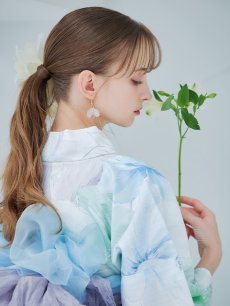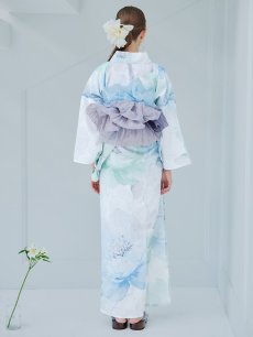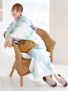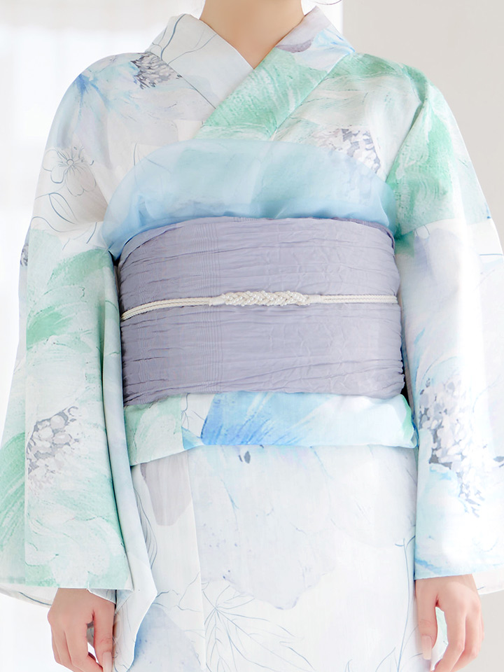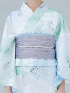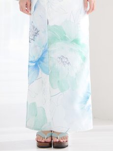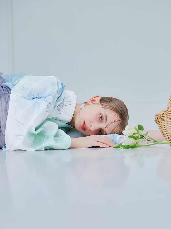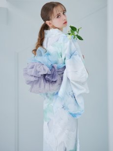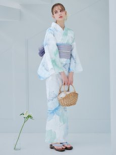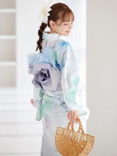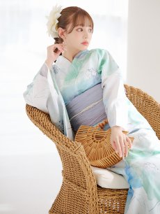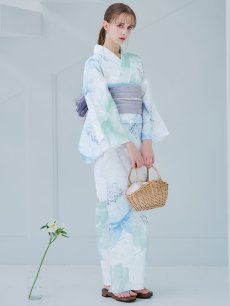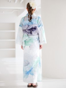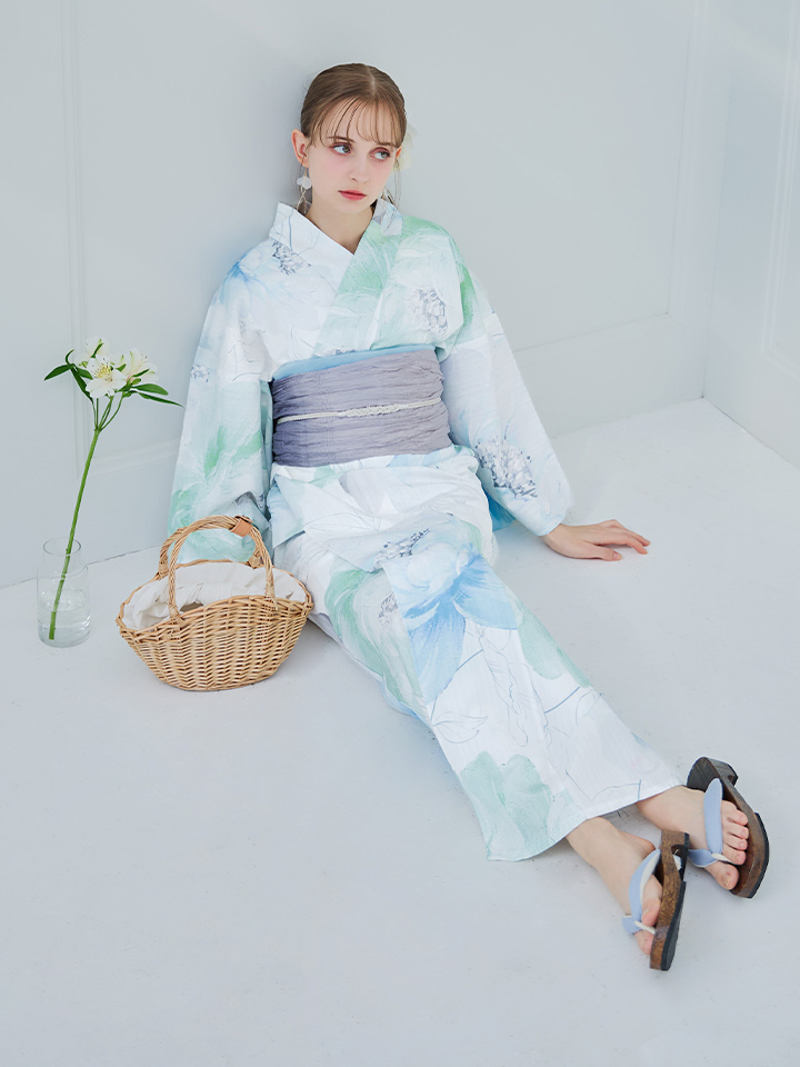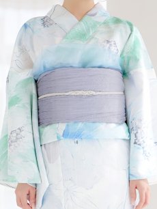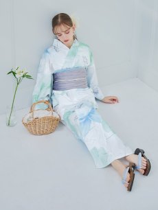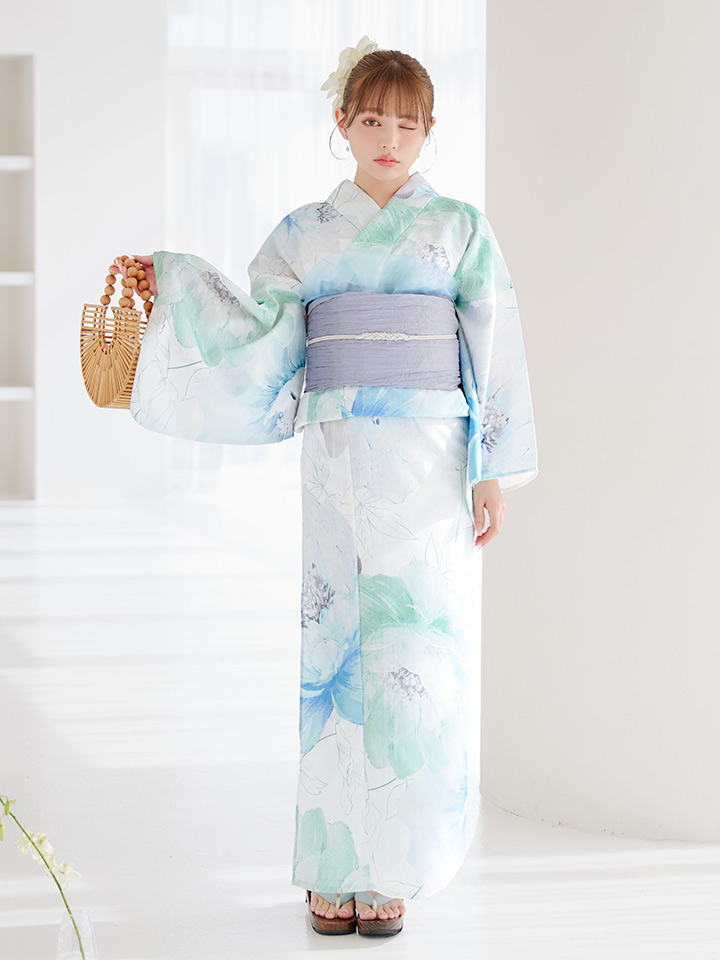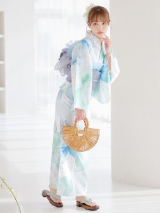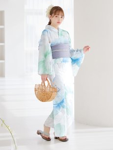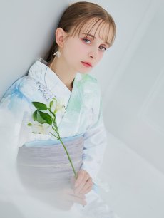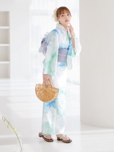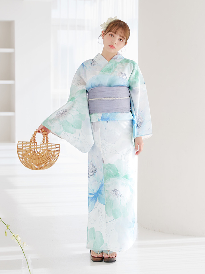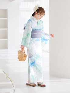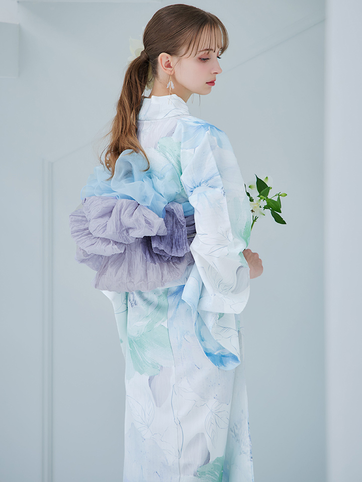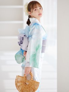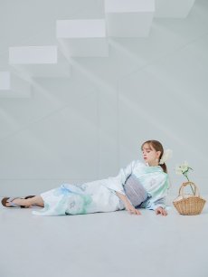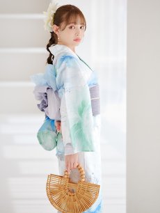 爽やかなミントとベビーブルーの色味がたまらない清涼感溢れる水彩大柄浴衣。