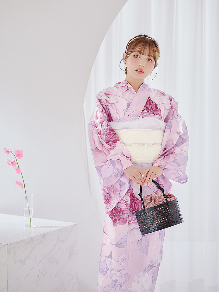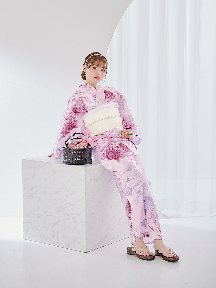 華麗なバラの花が咲き誇る華やかでリッチな大人浴衣。