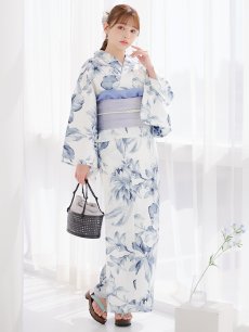【即日発送】大人グレイッシュ牡丹浴衣 【浴衣3点セット 浴衣/帯/下駄】 [YMT]