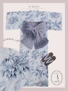 【即日発送】大人グレイッシュ牡丹浴衣 【浴衣3点セット 浴衣/帯/下駄】 [YMT] [Y-9102-nz-dzh-BL-F-25PO]