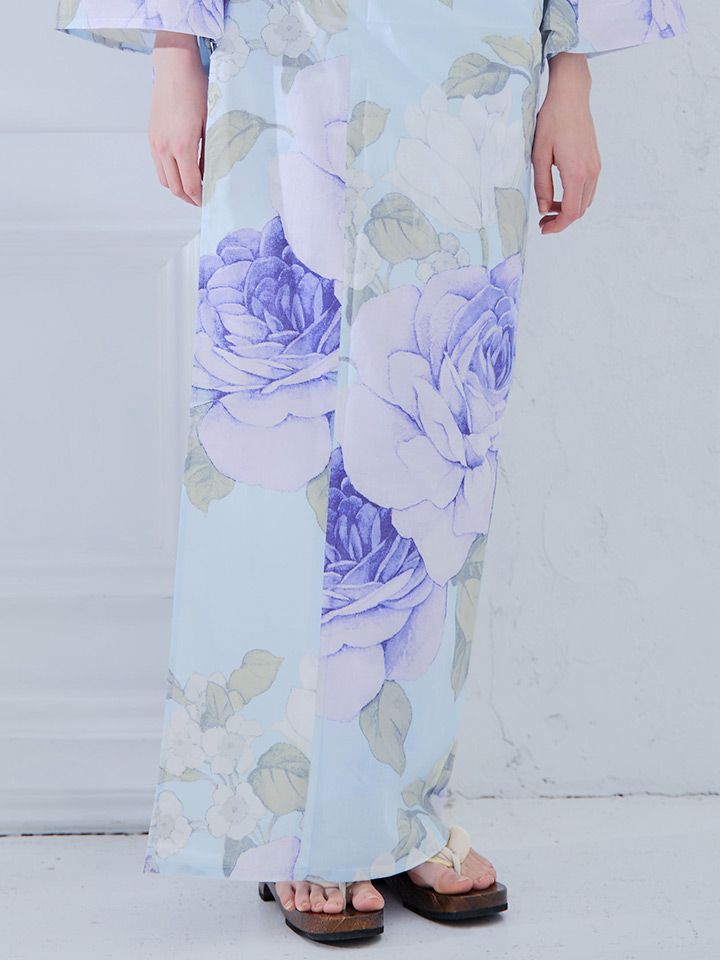 【即日発送】アンティークブルーローズ浴衣 【浴衣3点セット 浴衣/帯/下駄】 [YMT] [Y-9204-kj-BL-F-25MR]