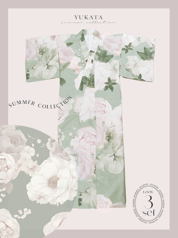 【即日発送】アンティークフラワーモダン浴衣 【浴衣3点セット 浴衣/帯/下駄】 [YMT] [Y-9121-sb-dza-GR-F-25IE]