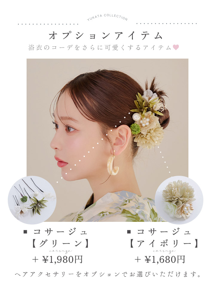 華麗なグラデーション牡丹に小柄なフラワーをプラスした可憐なデザインは女心をくすぐる。