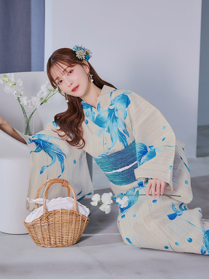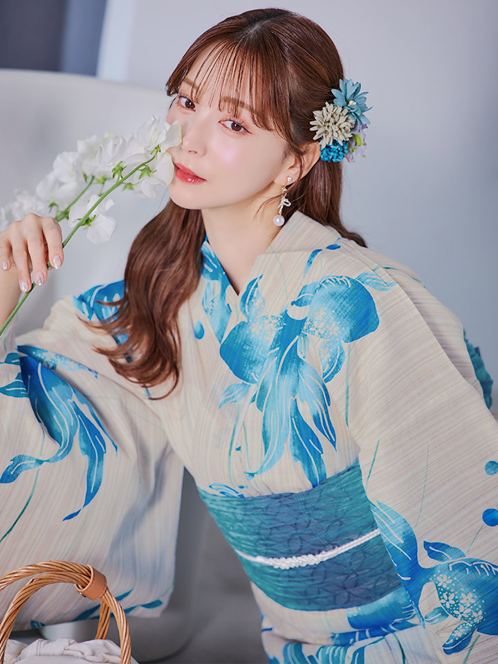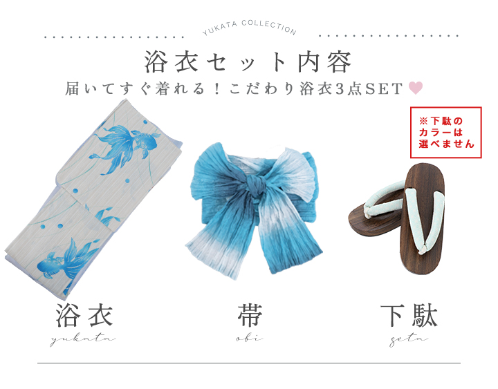 【即日発送】涼流の金魚浴衣 【浴衣3点セット 浴衣/帯/下駄】 [YMT] [Y-9178-ok-BL-F-25MR]