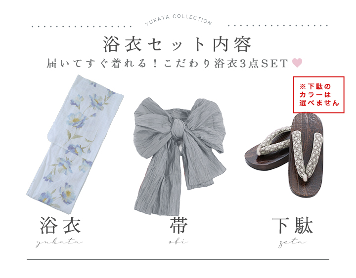【浴衣セール!】【即日発送】 ホワイト×アイシーフラワー浴衣 【浴衣3点セット 浴衣/帯/下駄】 [/YMT] [Y-9014-ok-BL-F-25MR]