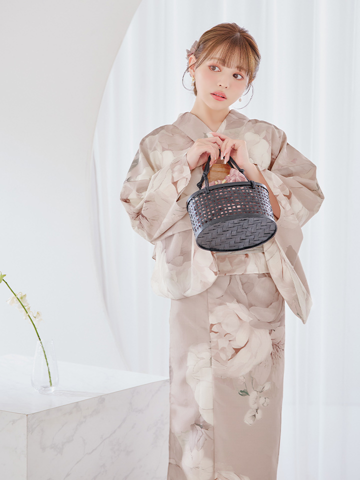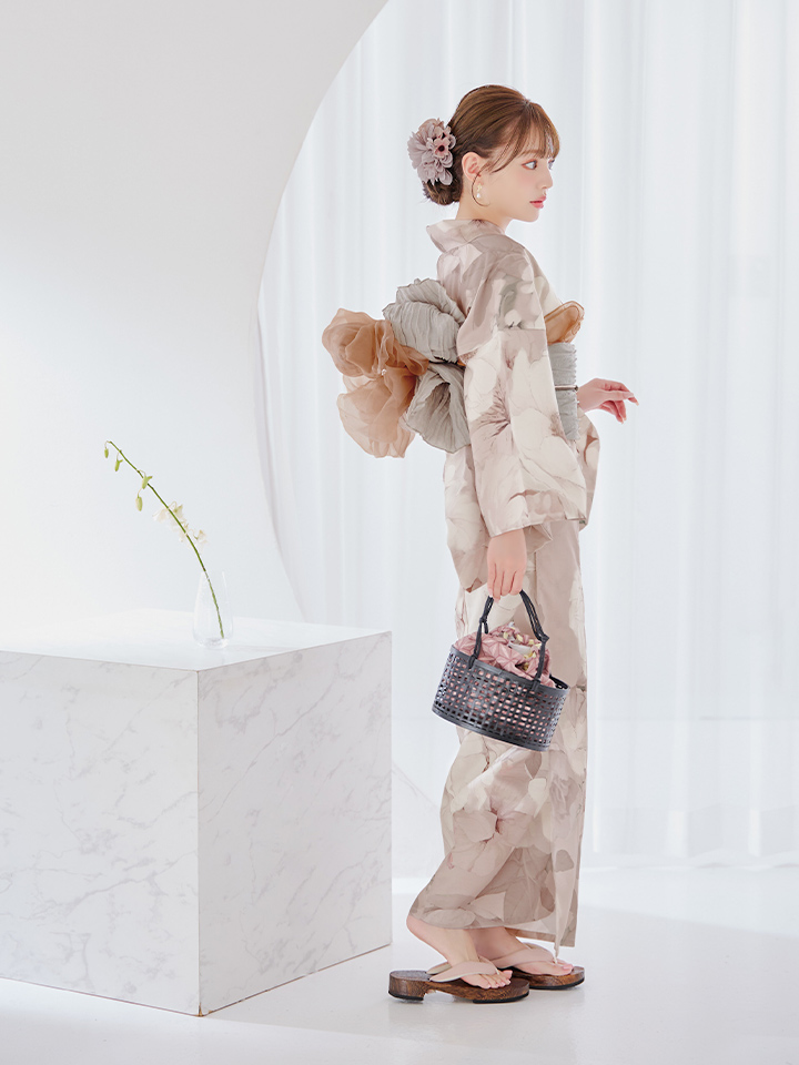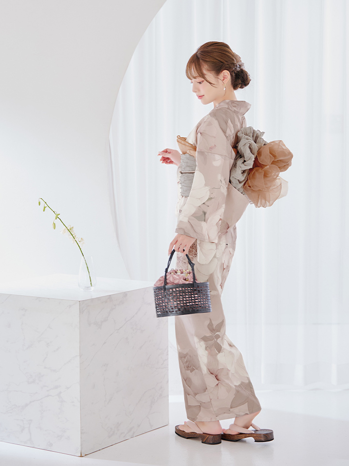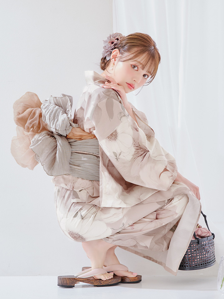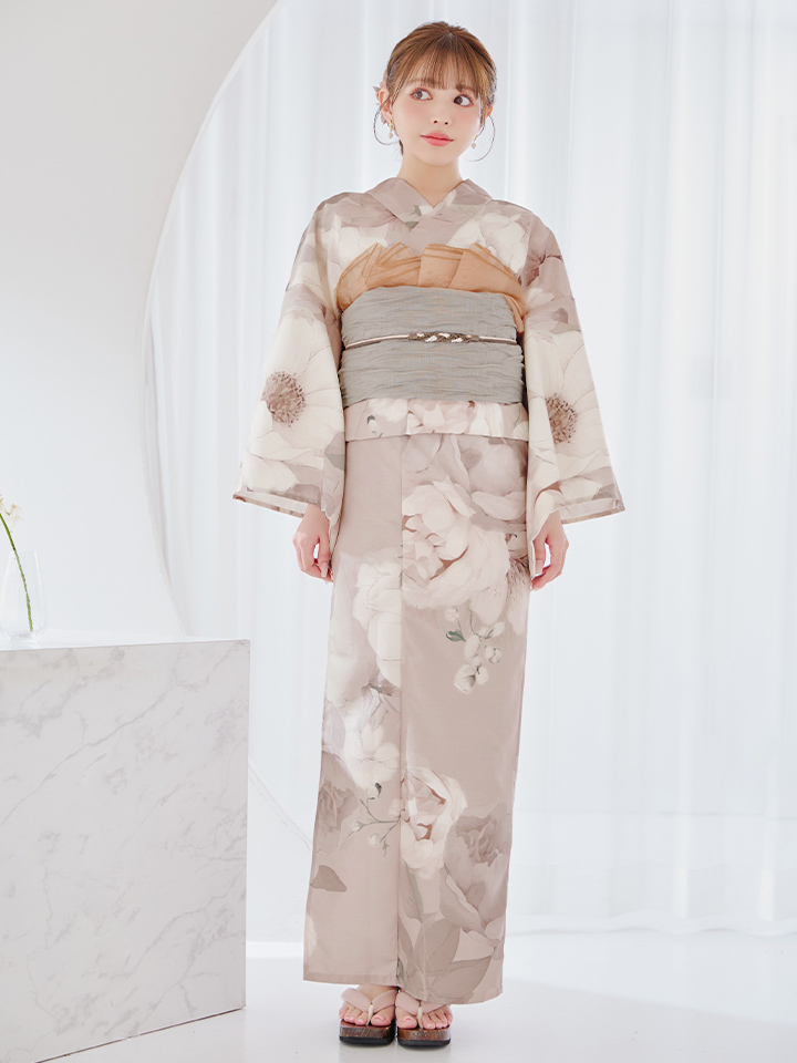 【即日発送】ベージュフラワー浴衣【浴衣3点セット 浴衣/帯/下駄】 [OF04] [Y-9141-sb-dzao-P-F-25PO]