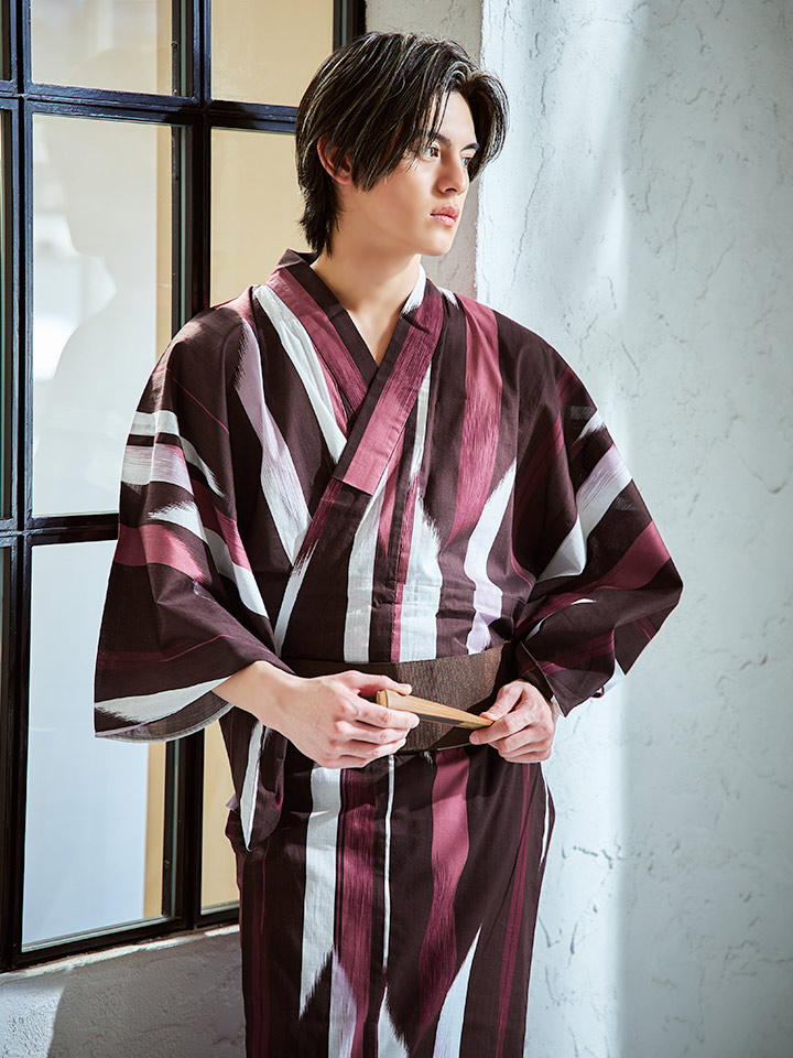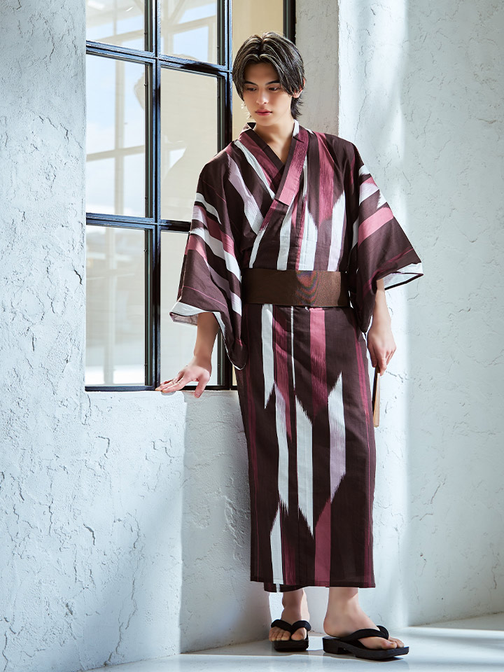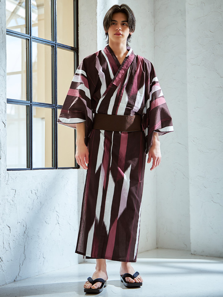 規則的な幾何学模様が織りなす粋なデザインのメンズ浴衣。