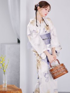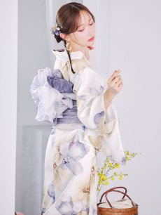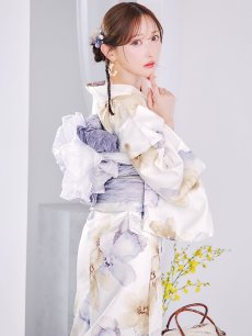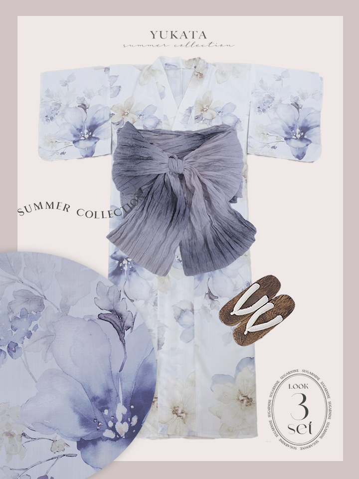 【即日発送】ソフトモダンシアーフラワー浴衣 【浴衣3点セット 浴衣/帯/下駄】 [YMT] [Y-9136-nz-dzc-BL-F-25YI]