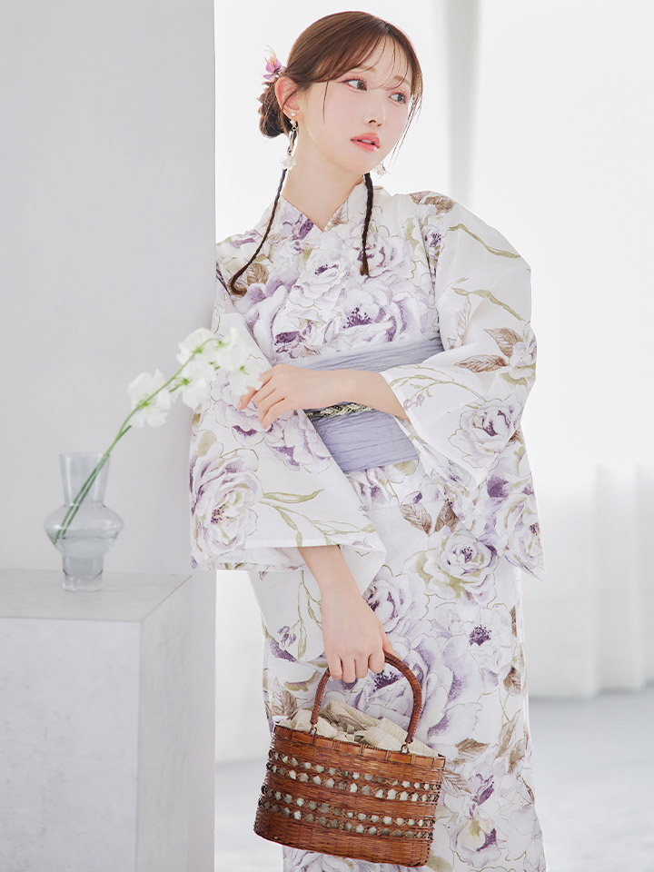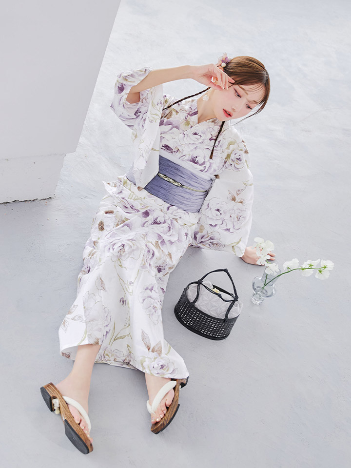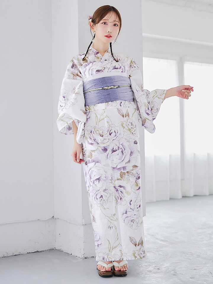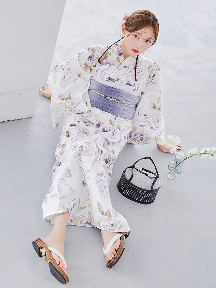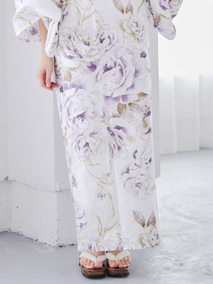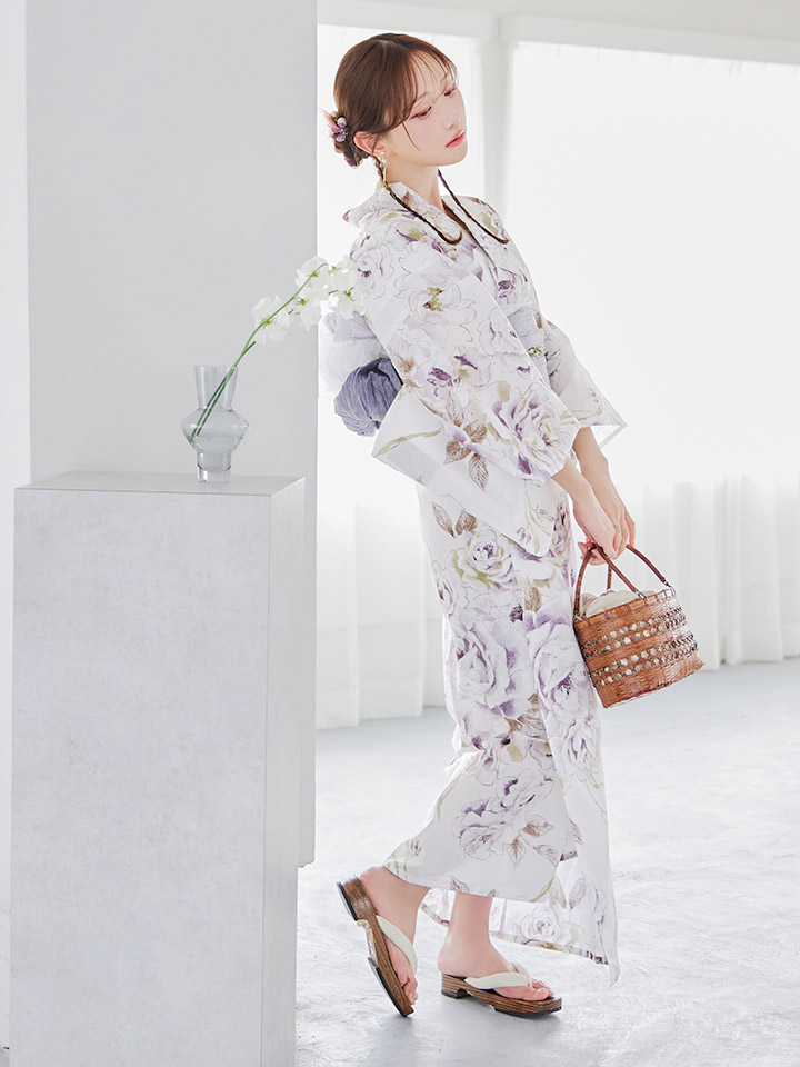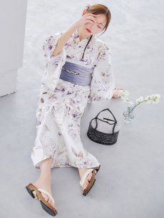 【即日発送】藤霞のアンティークローズ浴衣 【浴衣3点セット 浴衣/帯/下駄】 [YMT] [Y-9208-kj-W-F-25YI]