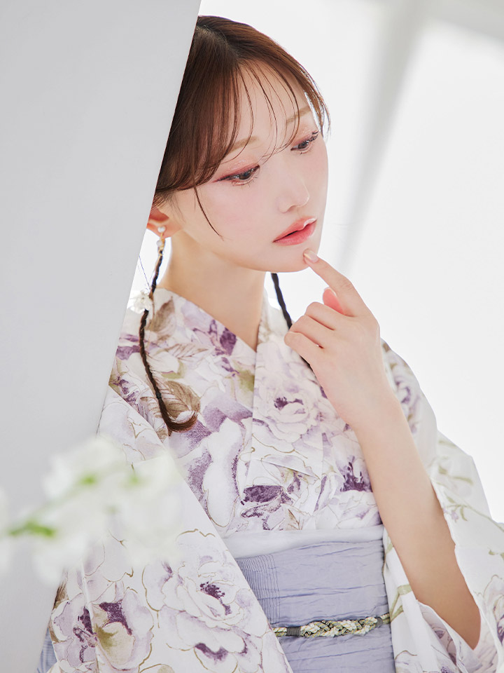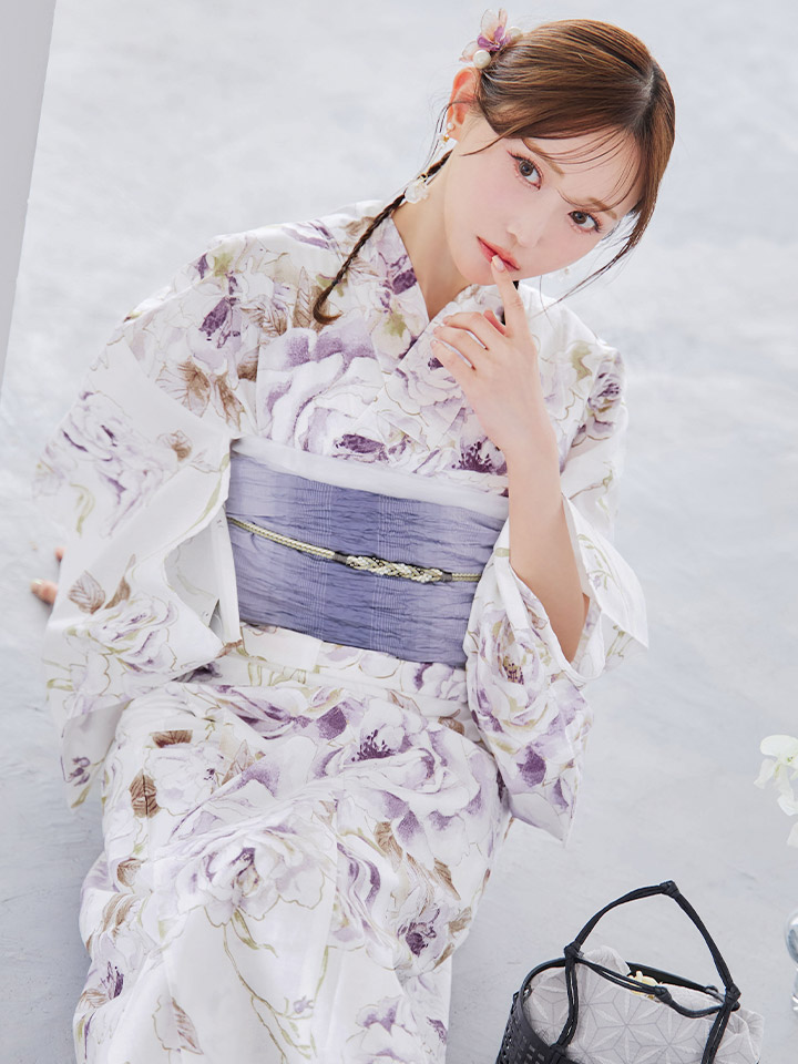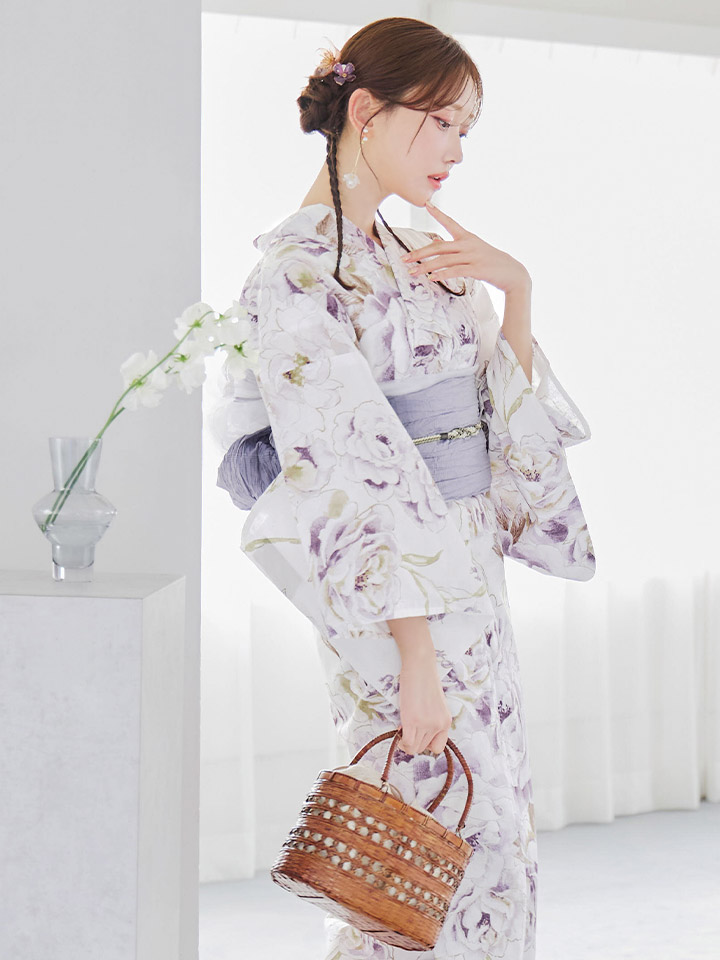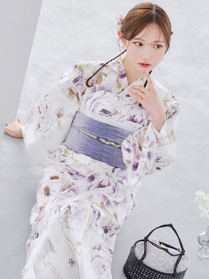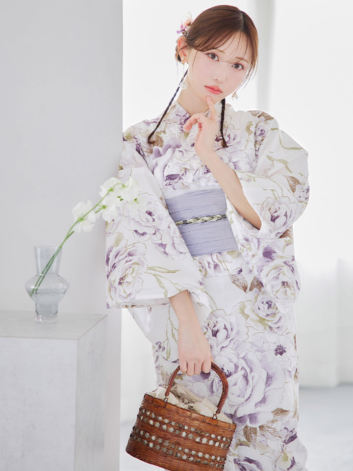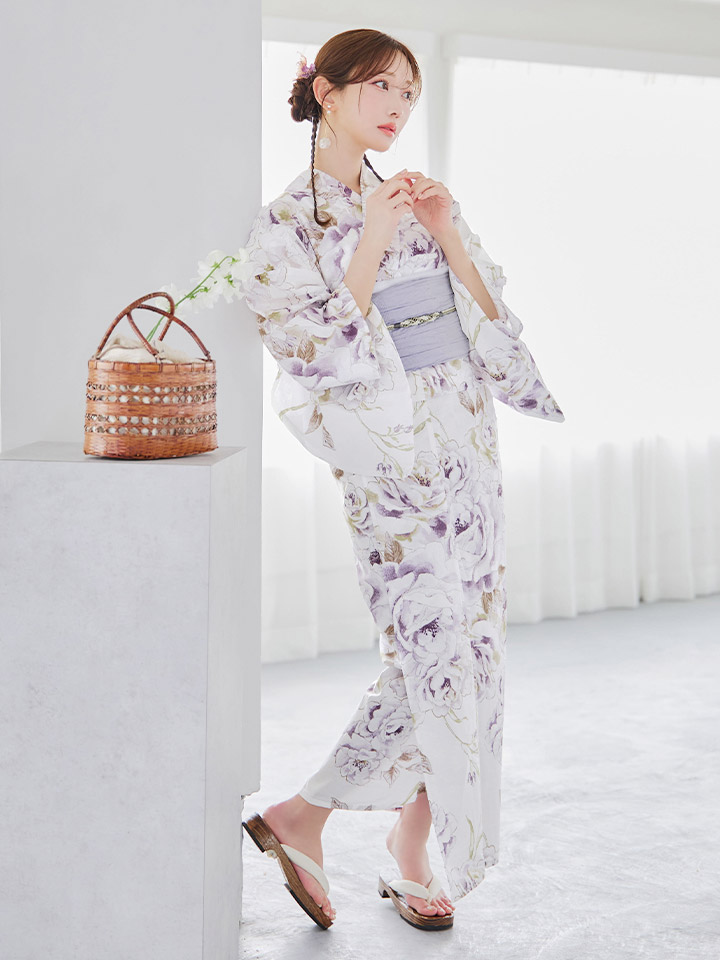 【即日発送】藤霞のアンティークローズ浴衣 【浴衣3点セット 浴衣/帯/下駄】 [YMT] [Y-9208-kj-W-F-25YI]