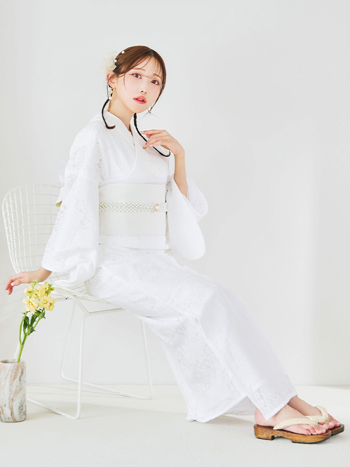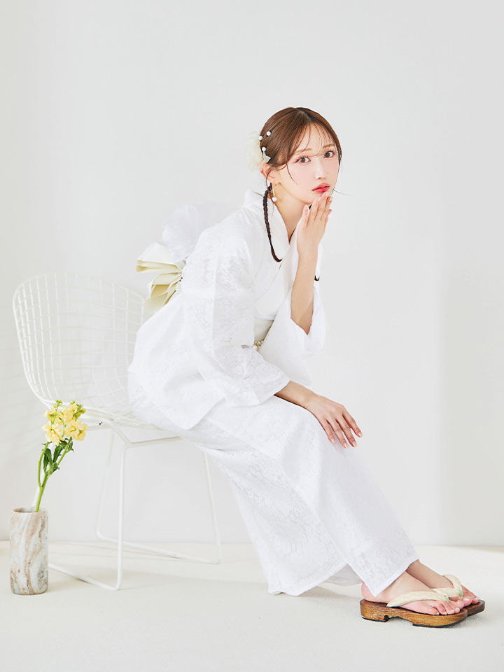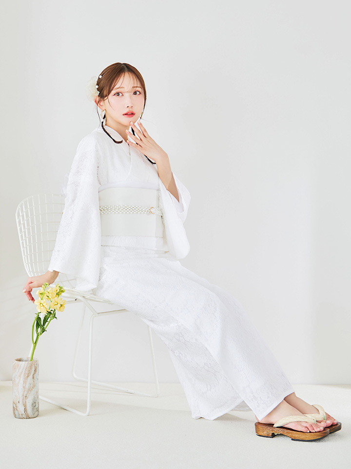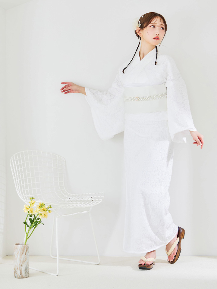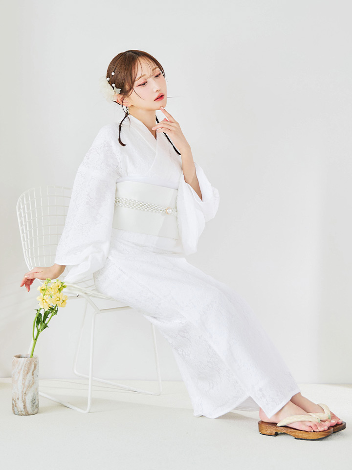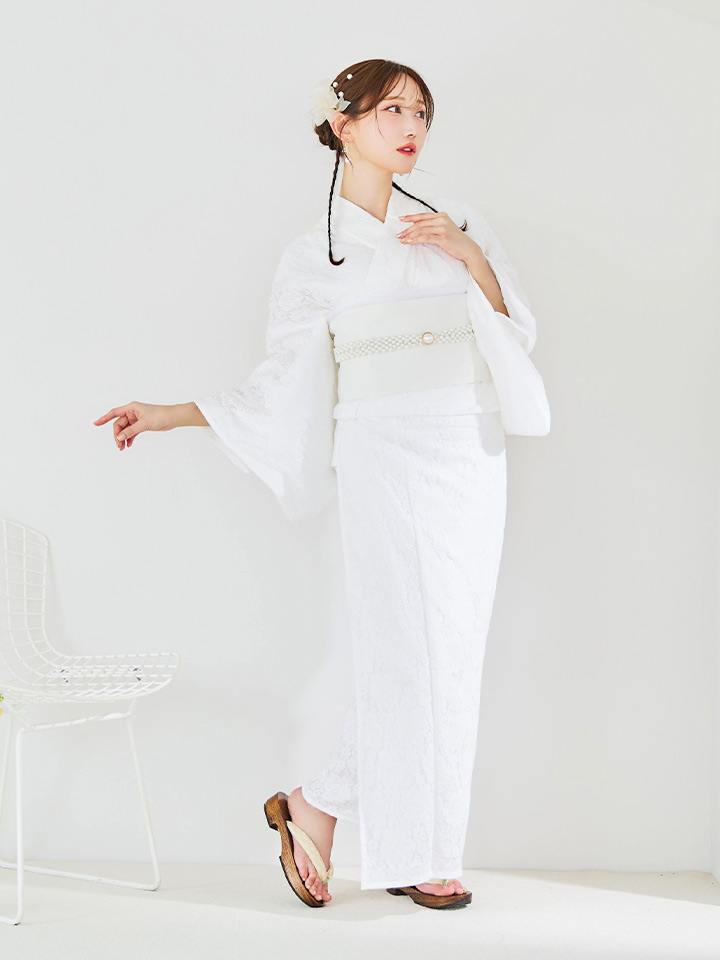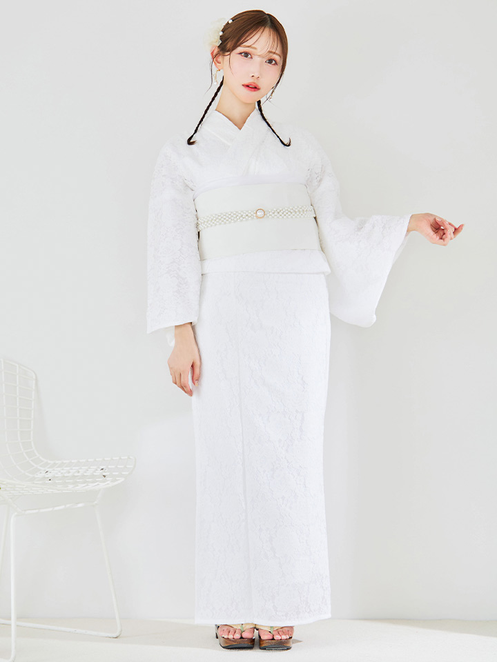 【即日発送】【浴衣セール】白レース浴衣【浴衣3点セット 浴衣/帯/下駄】[YMT] [Y-6009-ok-W-F-25YI]