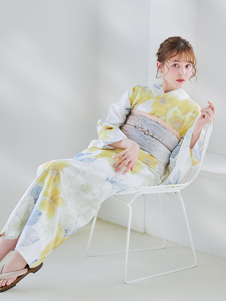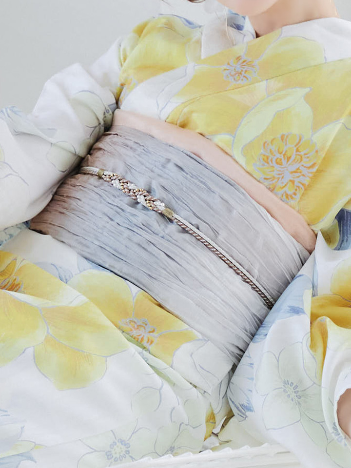 濃いめの帯でグッと締めて大人っぽく着こなして。