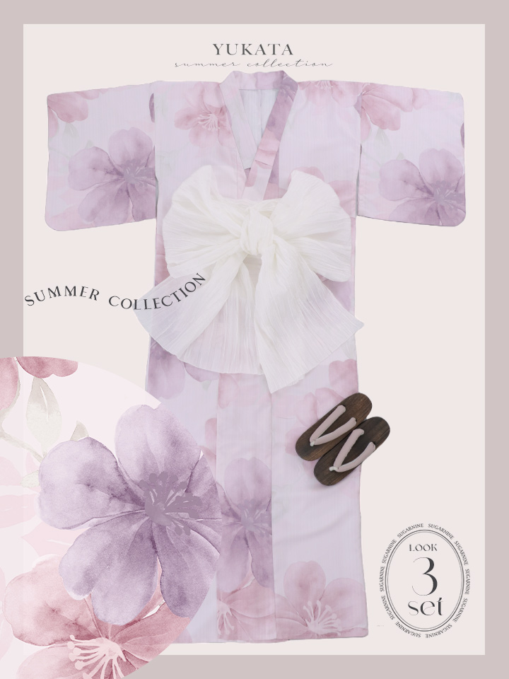 【即日発送】sweetチェリーブロッサム浴衣 【浴衣3点セット 浴衣/帯/下駄】 [/YMT] [Y-8033-nz-dzk-P-F-25NN]