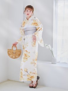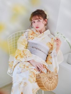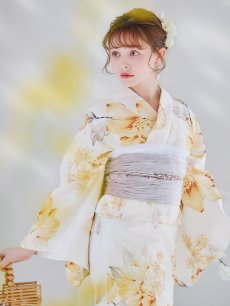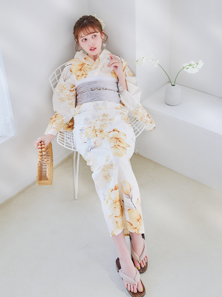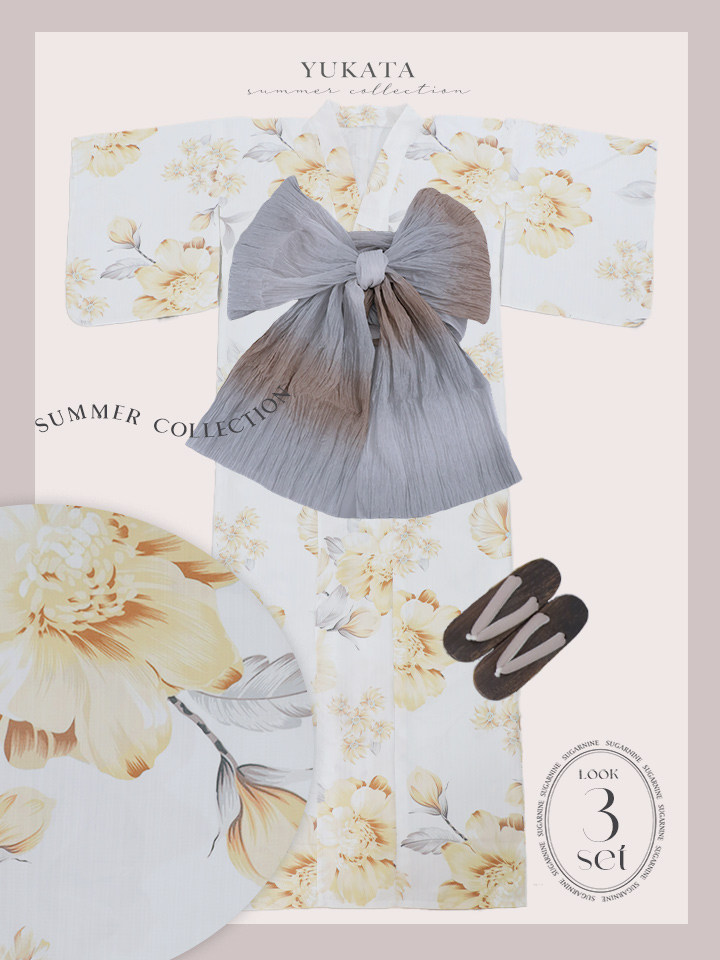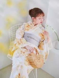【即日発送】グレイッシュイエロー牡丹浴衣 【浴衣3点セット 浴衣/帯/下駄】 [YMT] [Y-9103-nz-dzh-Y-F-25NN]