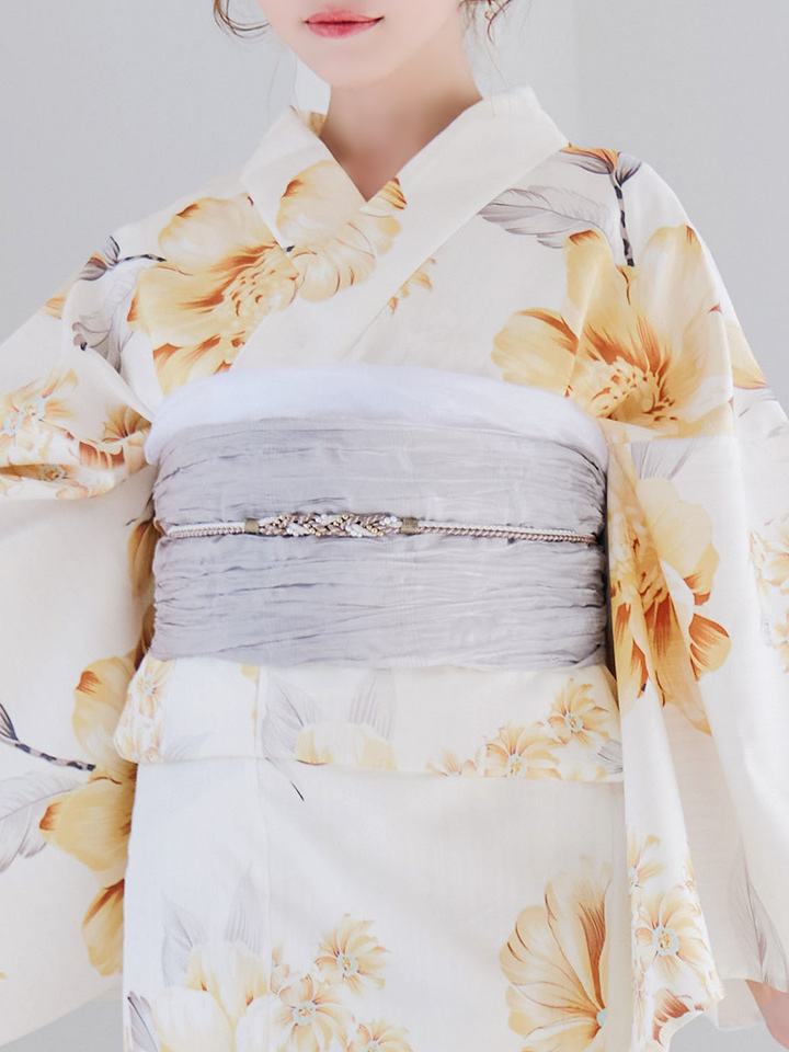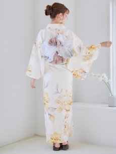 ホワイト牡丹が華麗で華やかさ溢れる女性らしいリッチな夏浴衣。