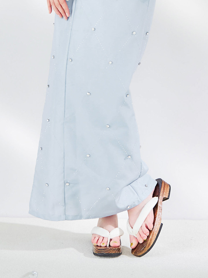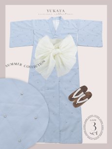【即日発送】アーガイルビジュー浴衣 【浴衣3点セット 浴衣/帯/下駄】 [YMT] [Y-9128-sb-dzc-BL-W-F-25NNYI]
