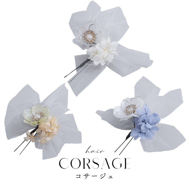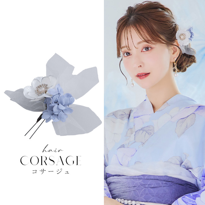 【即日発送】【浴衣小物】2連フラワーコサージュ【3カラー】[YMT] [YA-1001-kj]
