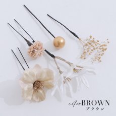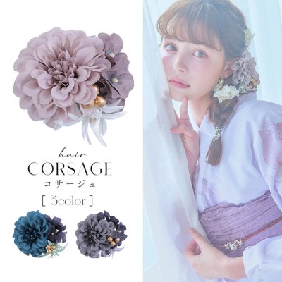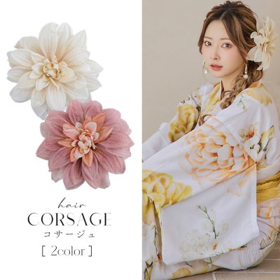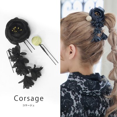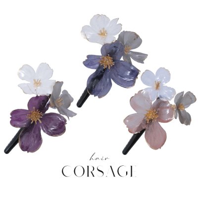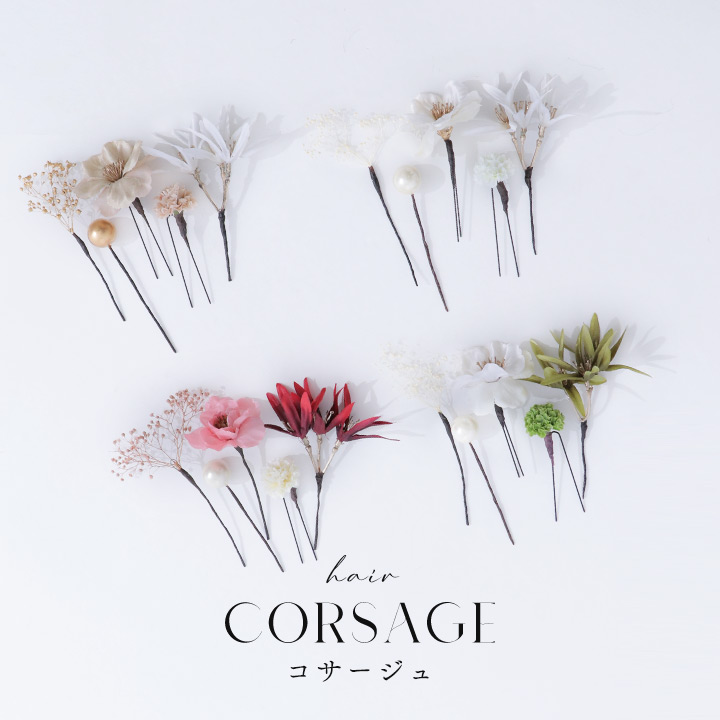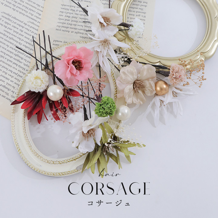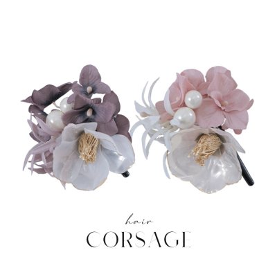 組み合わせて可愛いフラワー&パールのコサージュ髪型やシーンによってコーデを変えるのもオススメです。