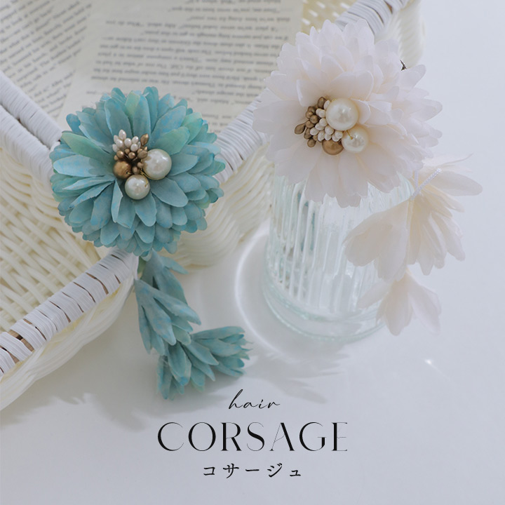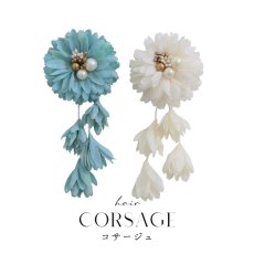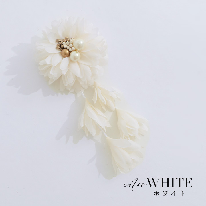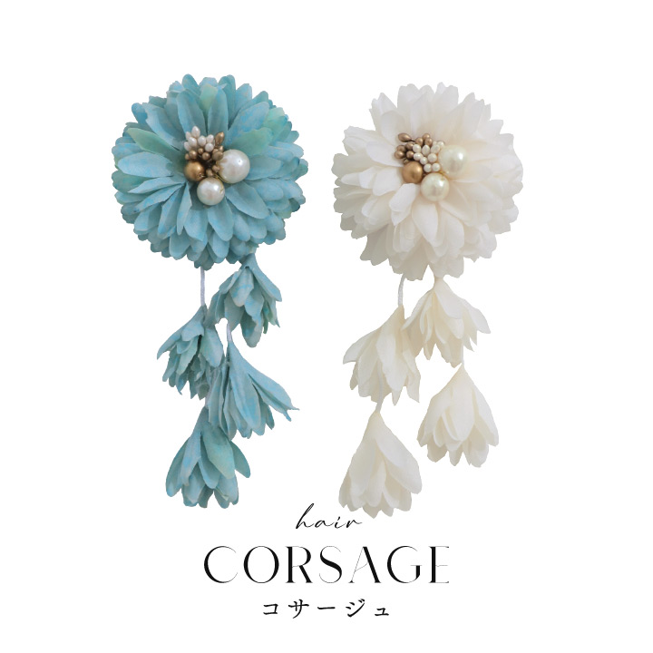 揺れるお花とパールの相性が涼しげなコサージュ。クリップ式で着脱も簡単!