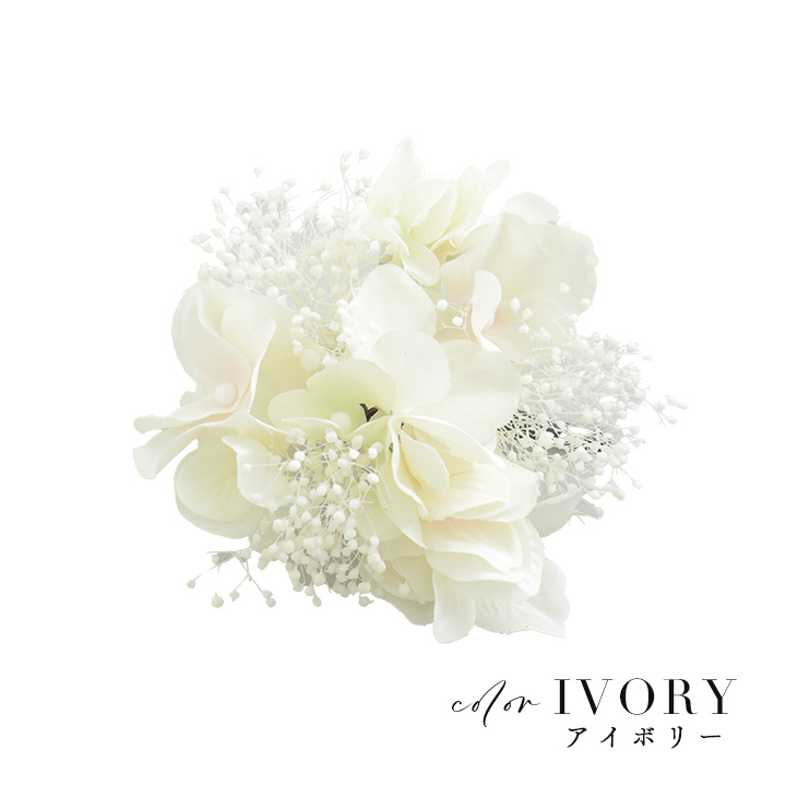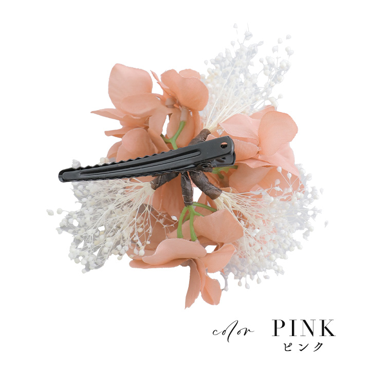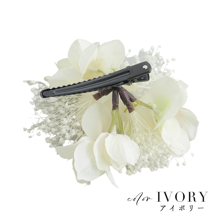 たくさんの花が並べられていて存在感も華やかさも◎簡単に着脱出来るクリップ仕様も嬉しい一品です♪