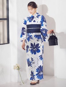 【即日発送】大柄ブルーフラワー浴衣 【浴衣3点セット 浴衣/帯/下駄】 [YMT] [Y-9217-kj-BL-F-25IE]