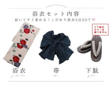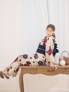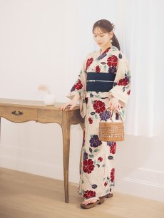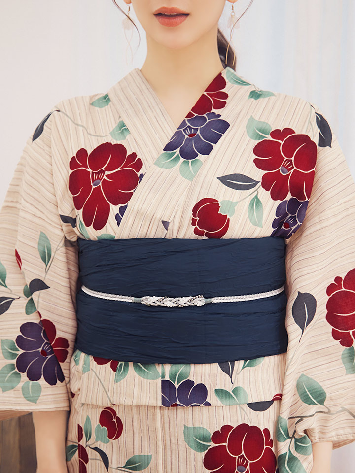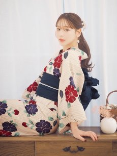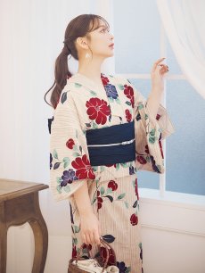 【即日発送】ストライプ椿柄浴衣【浴衣3点セット 浴衣/帯/下駄】[YMT] [Y-9259-ok-R-F-25IE]