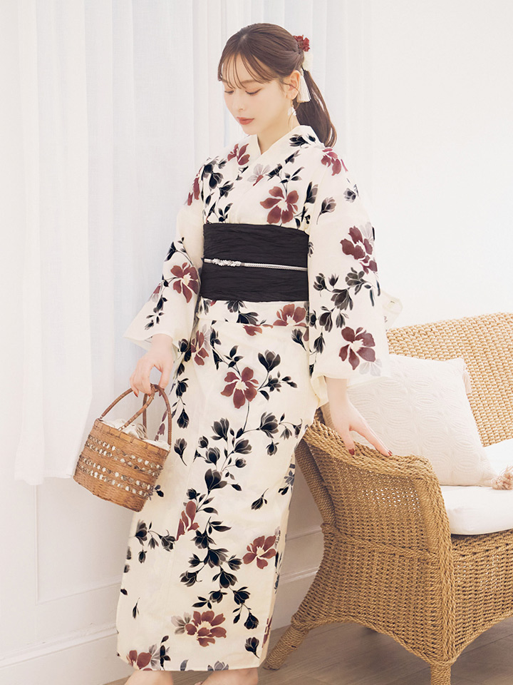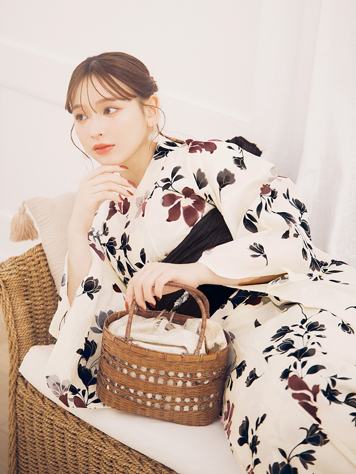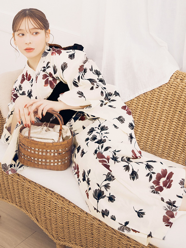 連なるように咲き誇る大人のフラワー浴衣。