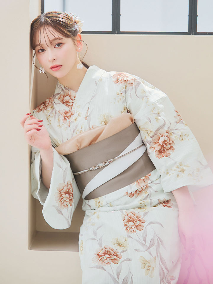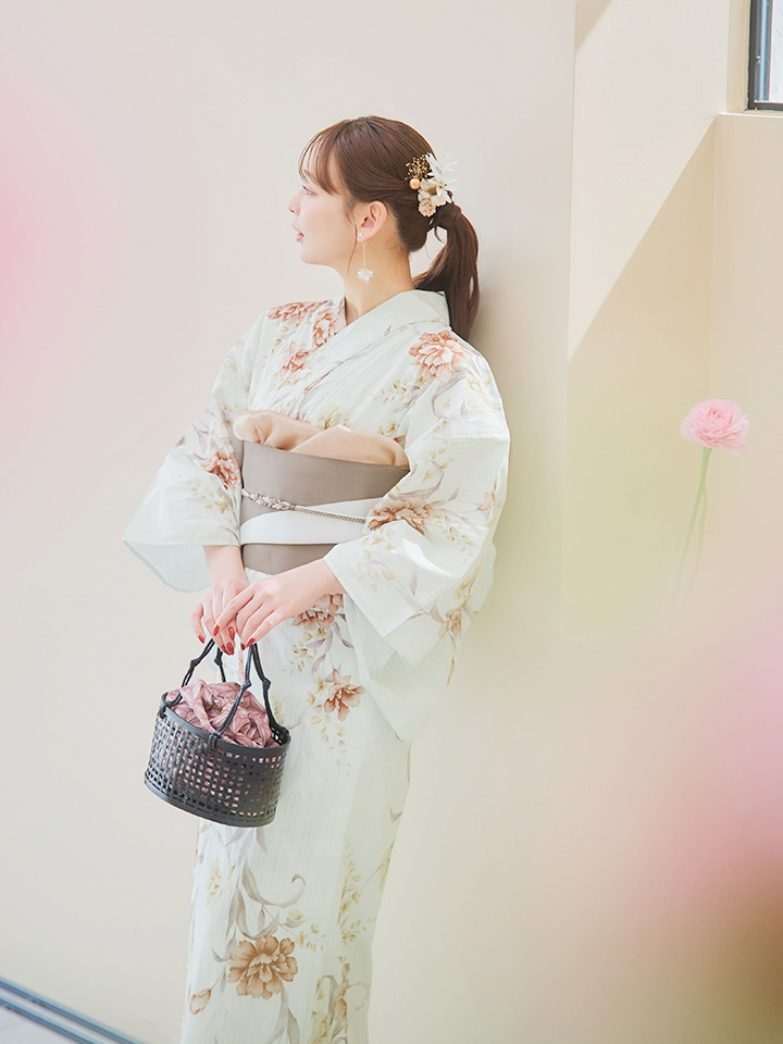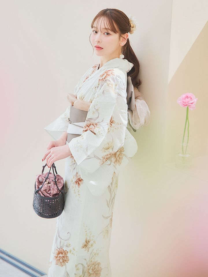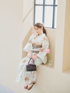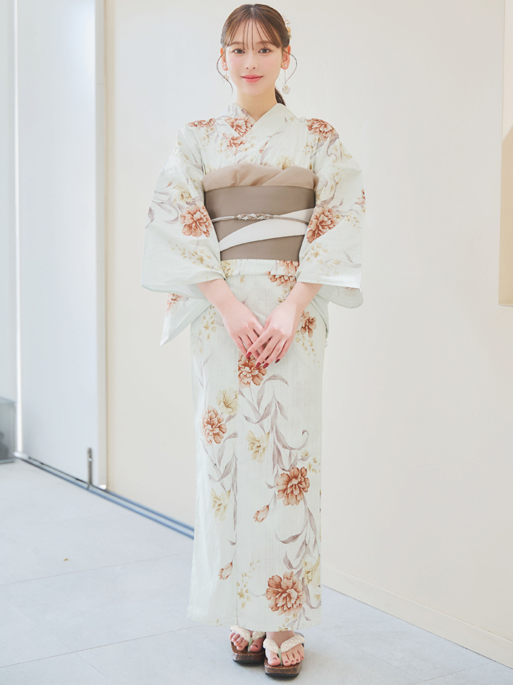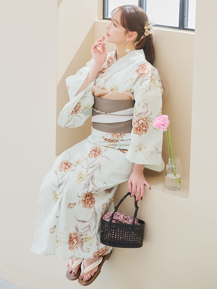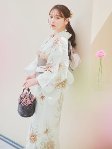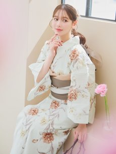 【即日発送】カーネーション花柄浴衣 【浴衣3点セット 浴衣/帯/下駄】 [YMT] [Y-9240-ok-BE-F-25IE]