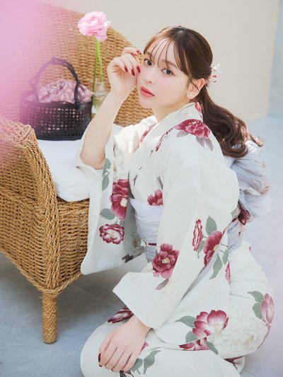 【即日発送】カーネーション花柄浴衣 【浴衣3点セット 浴衣/帯/下駄】 [YMT]