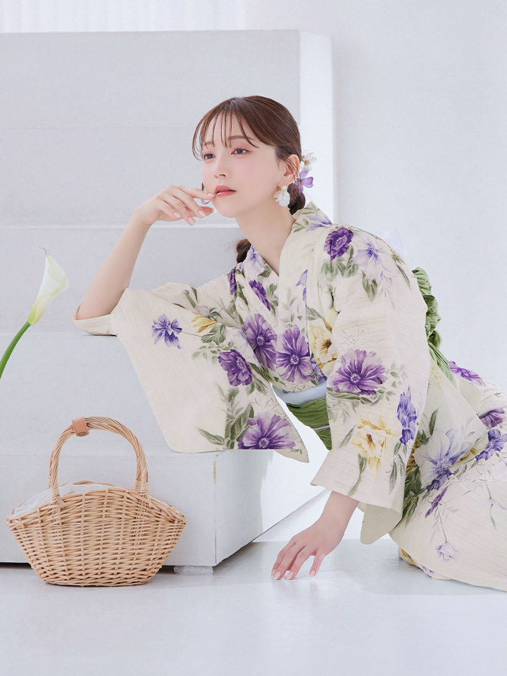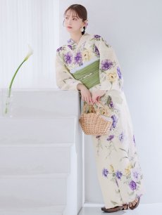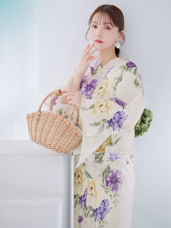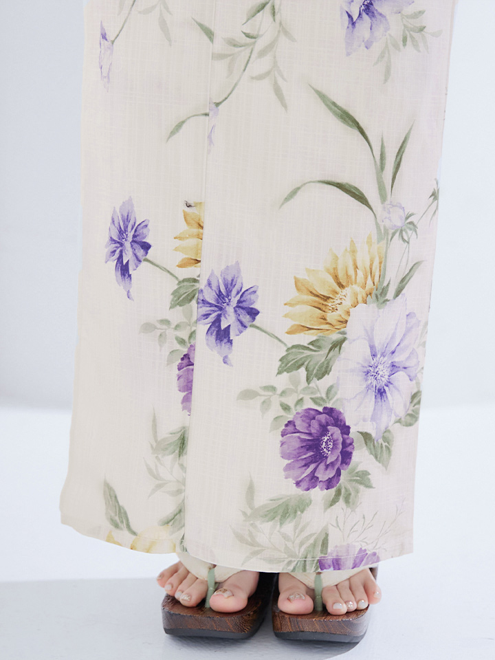 【即日発送】ボタニカルフラワー浴衣 【浴衣3点セット 浴衣/帯/下駄】 [YMT]