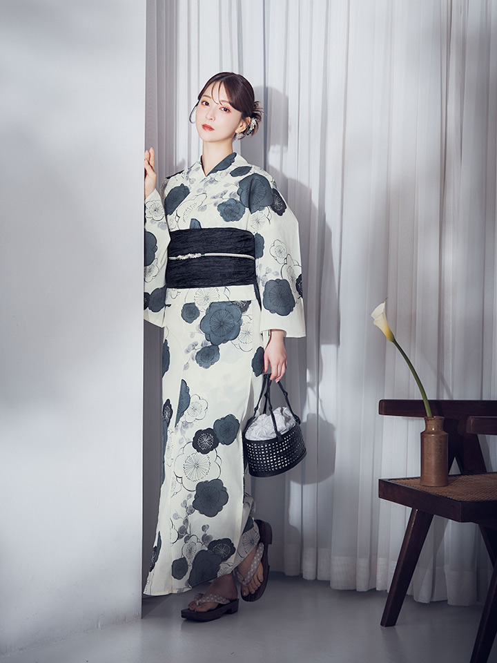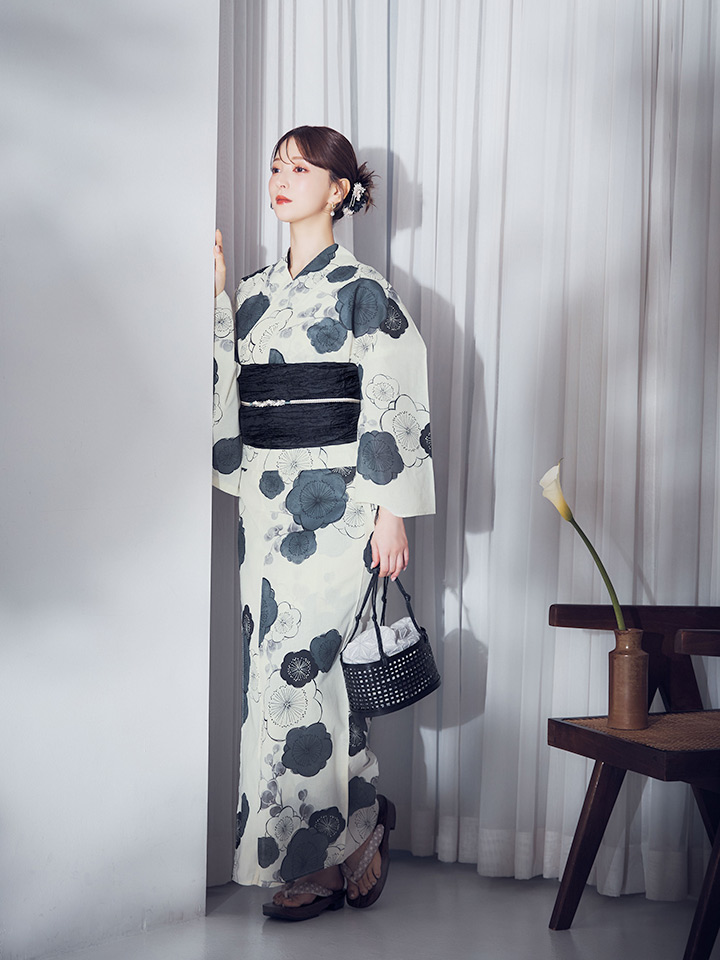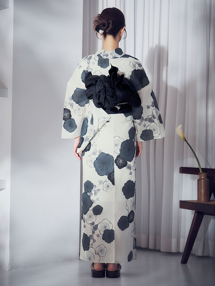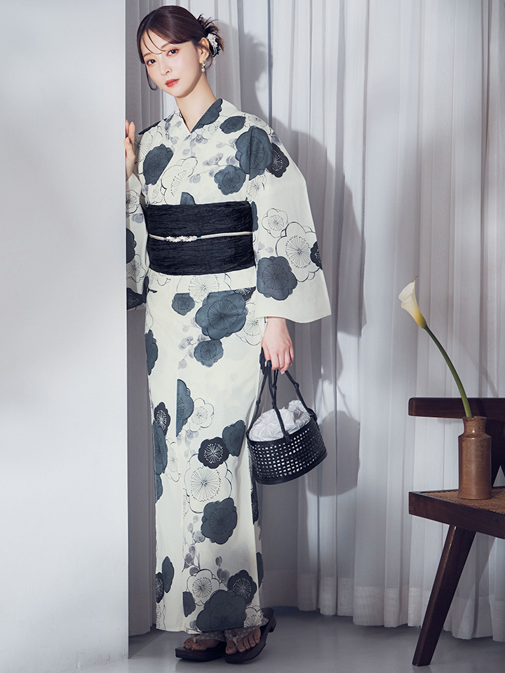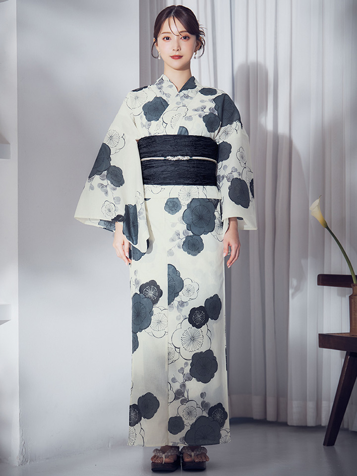 【即日発送】梅柄藍鼠色浴衣 【浴衣3点セット 浴衣/帯/下駄】 [OF04] [Y-9244-ok-B-F-25MR]