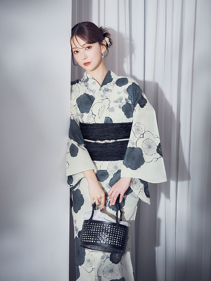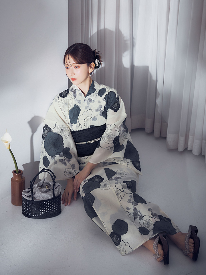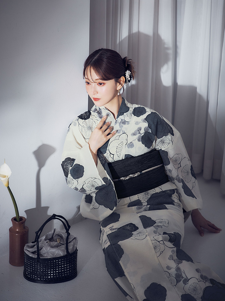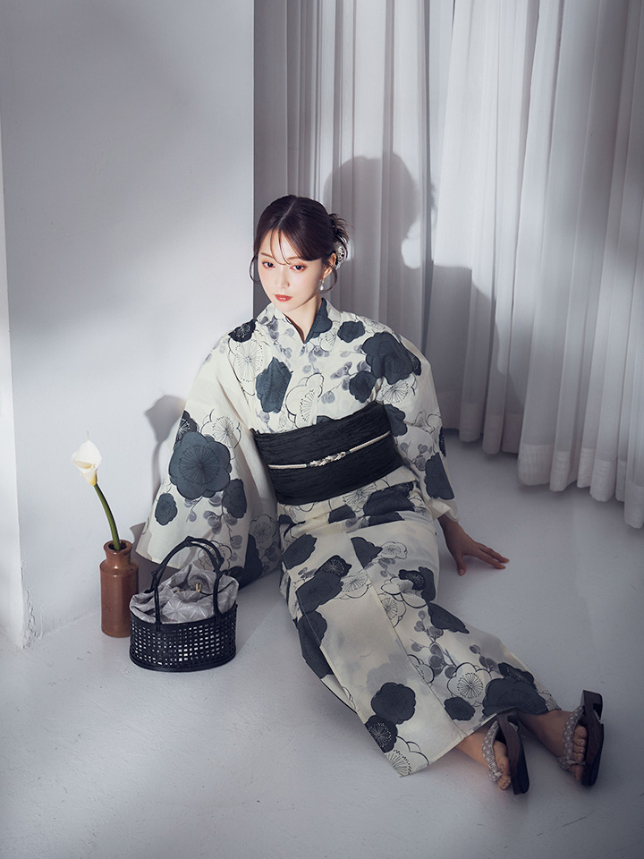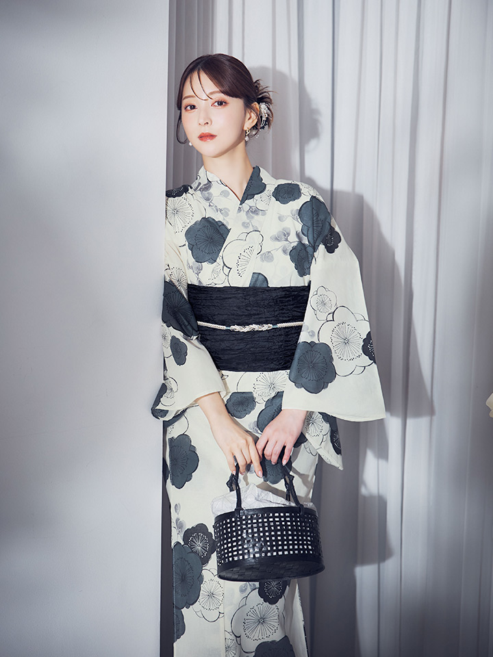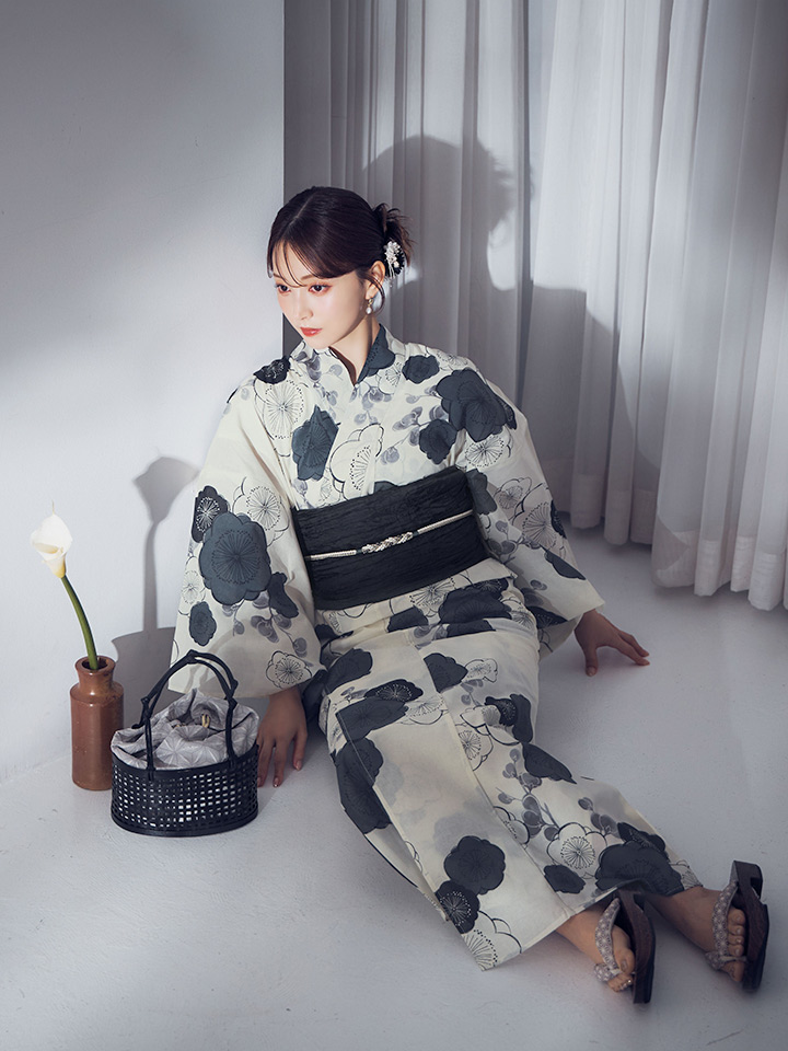 【即日発送】梅柄藍鼠色浴衣 【浴衣3点セット 浴衣/帯/下駄】 [OF04] [Y-9244-ok-B-F-25MR]
