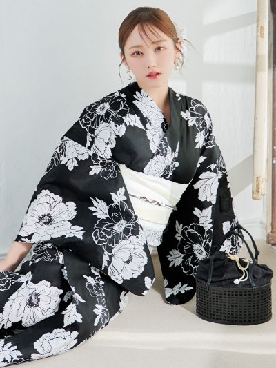 【即日発送】水彩線画フラワー浴衣 【浴衣3点セット 浴衣/帯/下駄】 [YMT]
