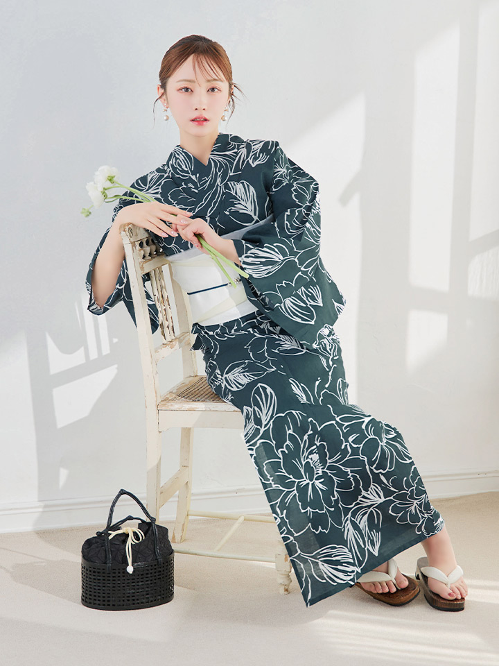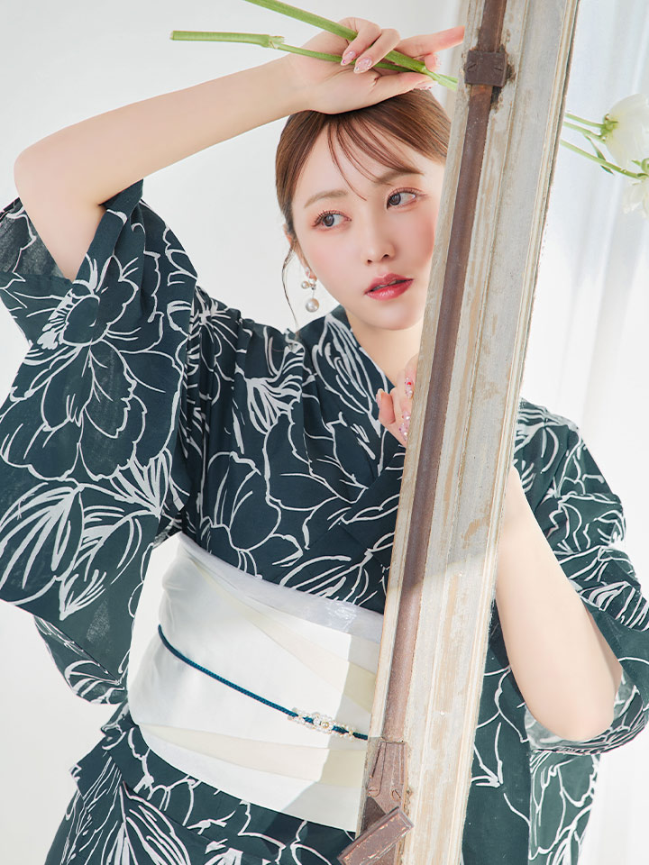 落ち着きのカラーが浴衣のコーディネイトに深みをプラス