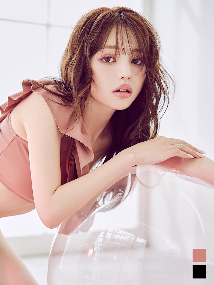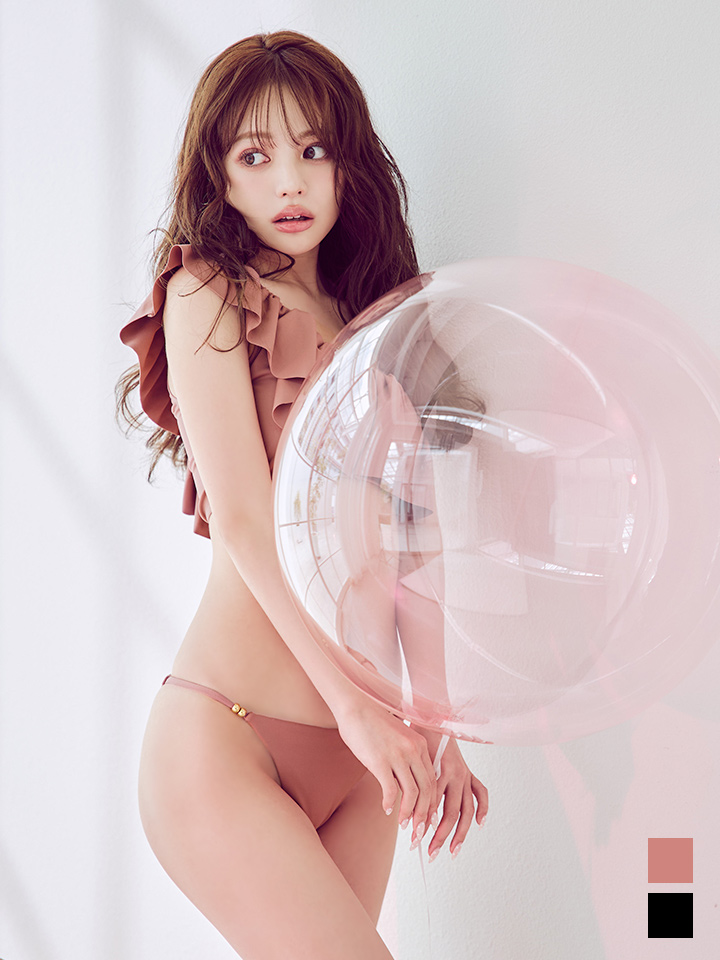 無地 フリルビキニ 胸 バスト ウエストくすみピンク
