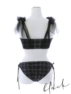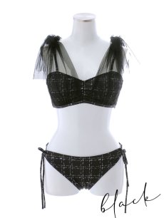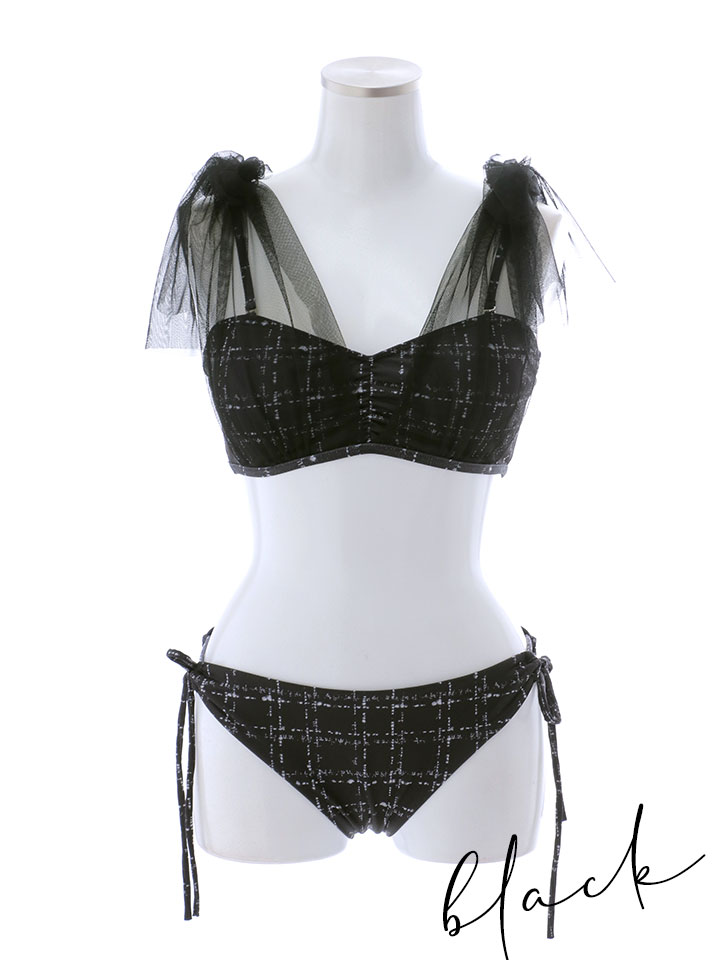 シンプルなブラックビキニに、透け感のあるシアースリーブをプラスした大人なデザイン。
