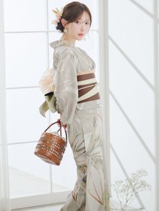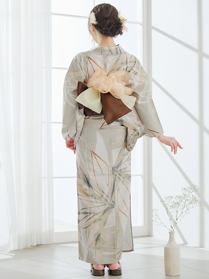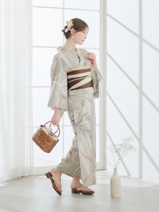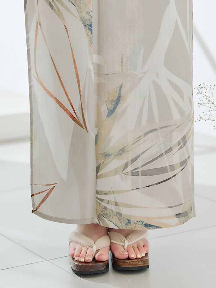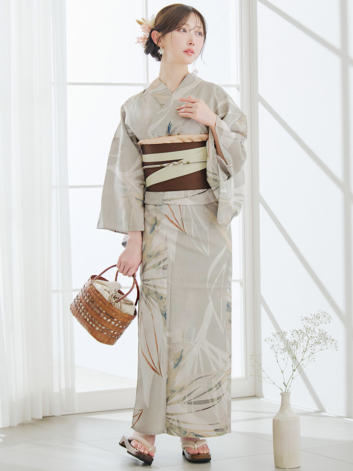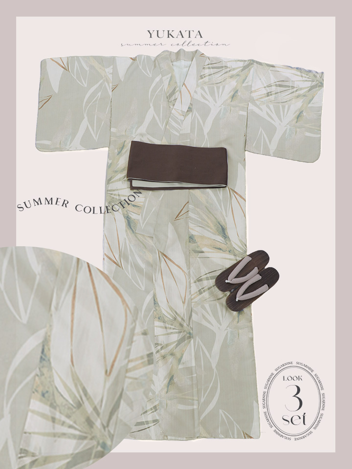 【即日発送】【浴衣セール!】ヘルシーリーフ柄ベージュ浴衣 【浴衣3点セット 浴衣/帯/下駄】 [YMT] [Y-8032-nz-dzh-BE-F-25YI]