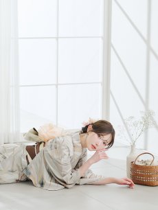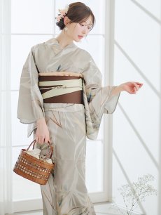 【即日発送】【浴衣セール!】ヘルシーリーフ柄ベージュ浴衣 【浴衣3点セット 浴衣/帯/下駄】 [YMT]