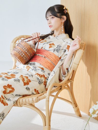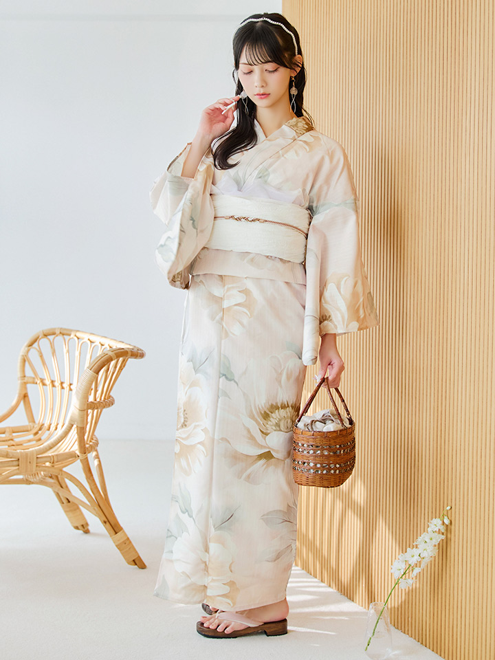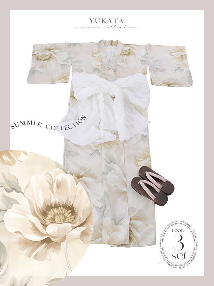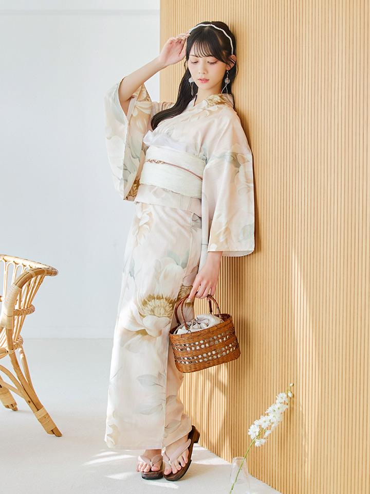 【即日発送】クリームイエローピオニー浴衣 【浴衣3点セット 浴衣/帯/下駄】 [YMT] [Y-8040-nz-dzc-CM-F-25MK]
