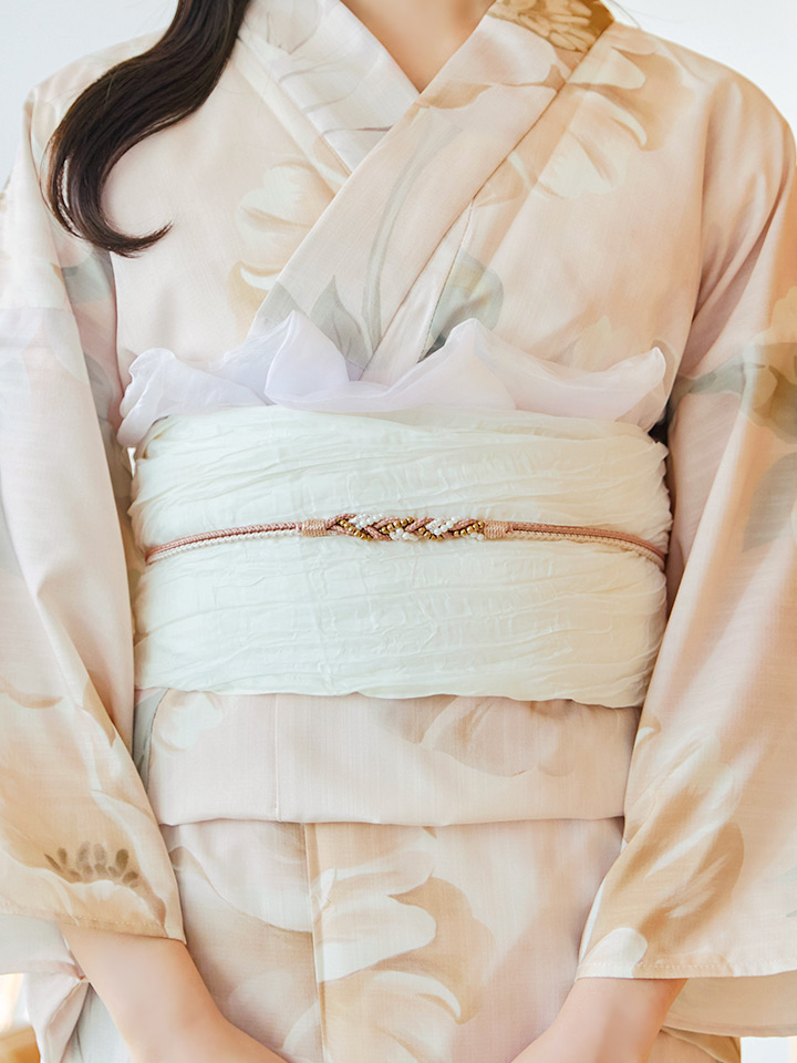 ホワイトの帯やパール小物でちょっぴり甘さをプラス♥