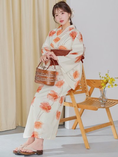 【即日発送】橙色に花咲く蔓模様浴衣 【浴衣3点セット 浴衣/帯/下駄】 [OF04] [Y-9157-wk-OR-F-25MK]