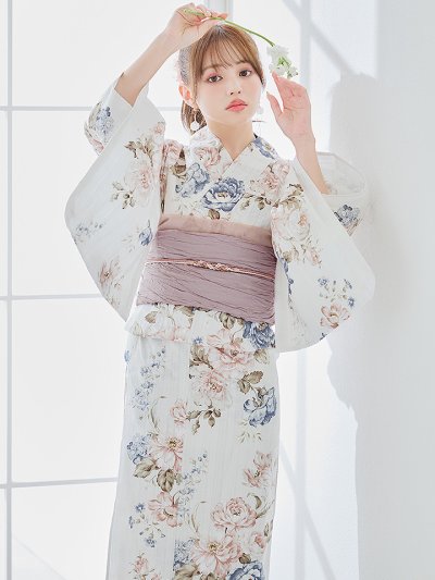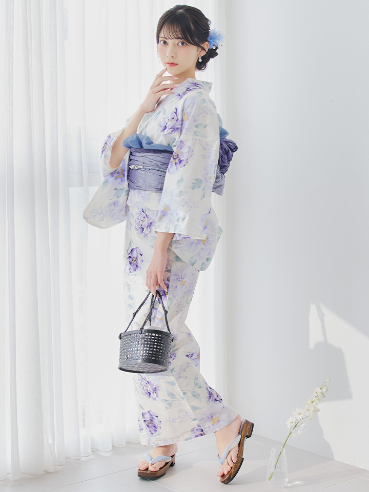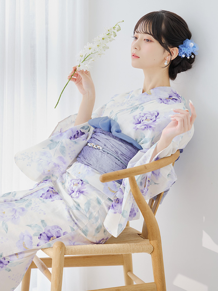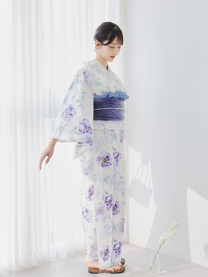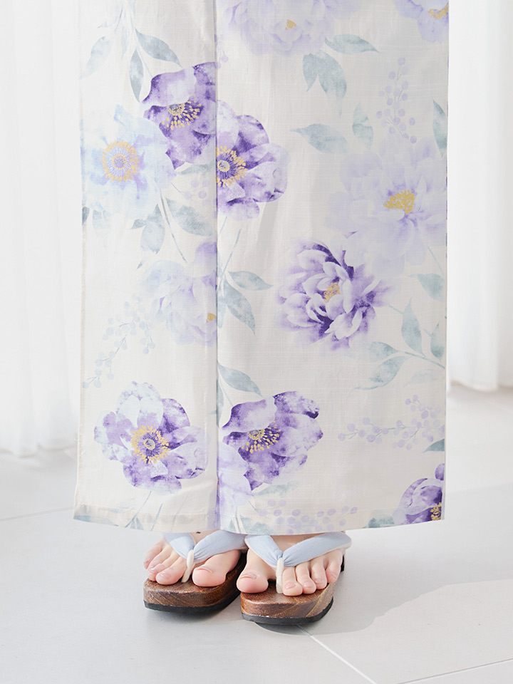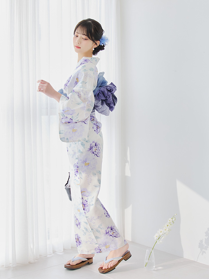 【即日発送】水彩紫牡丹柄浴衣 【浴衣3点セット 浴衣/帯/下駄】 [YMT] [Y-9156-wk-BL-F-25MK]