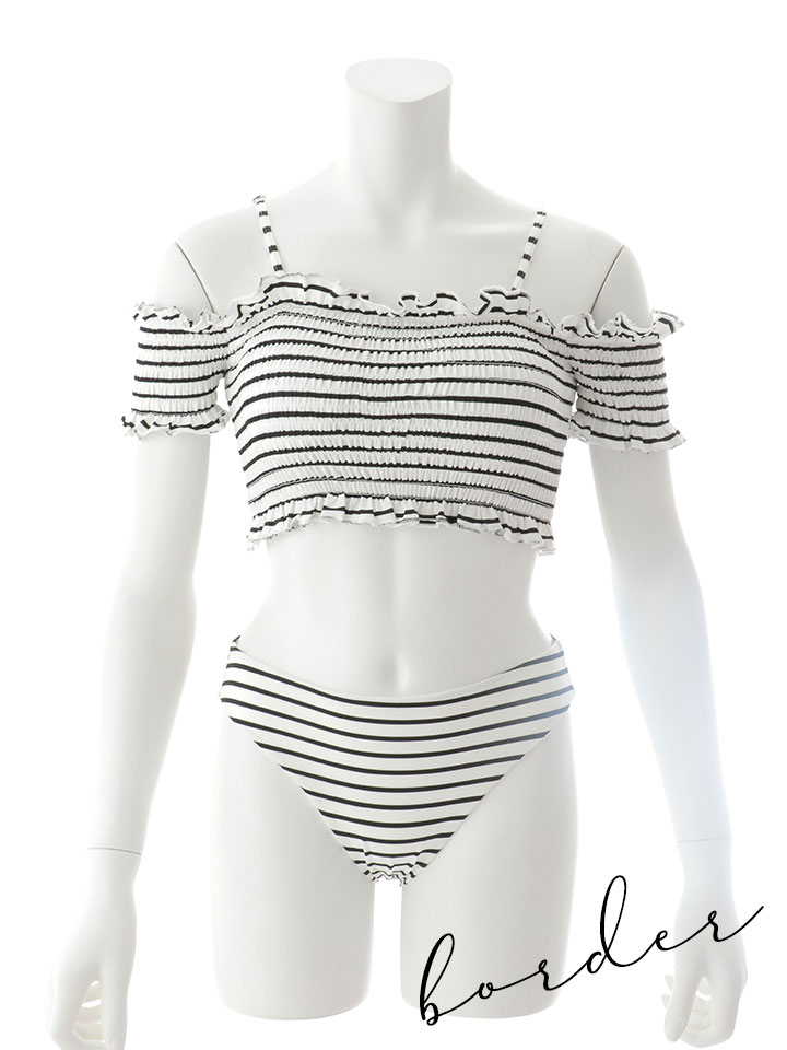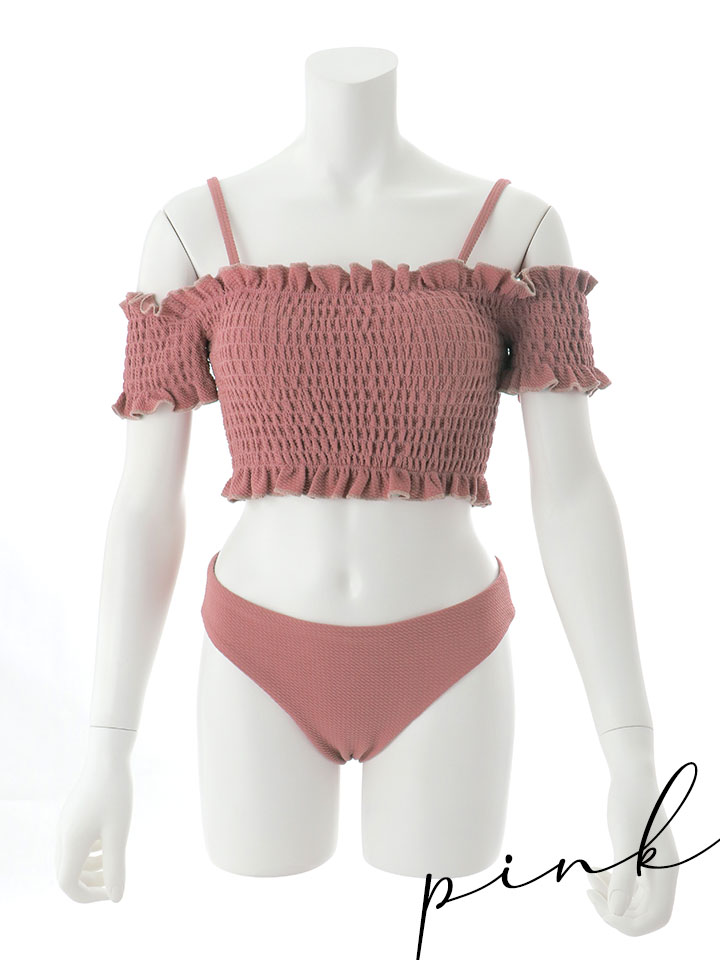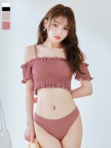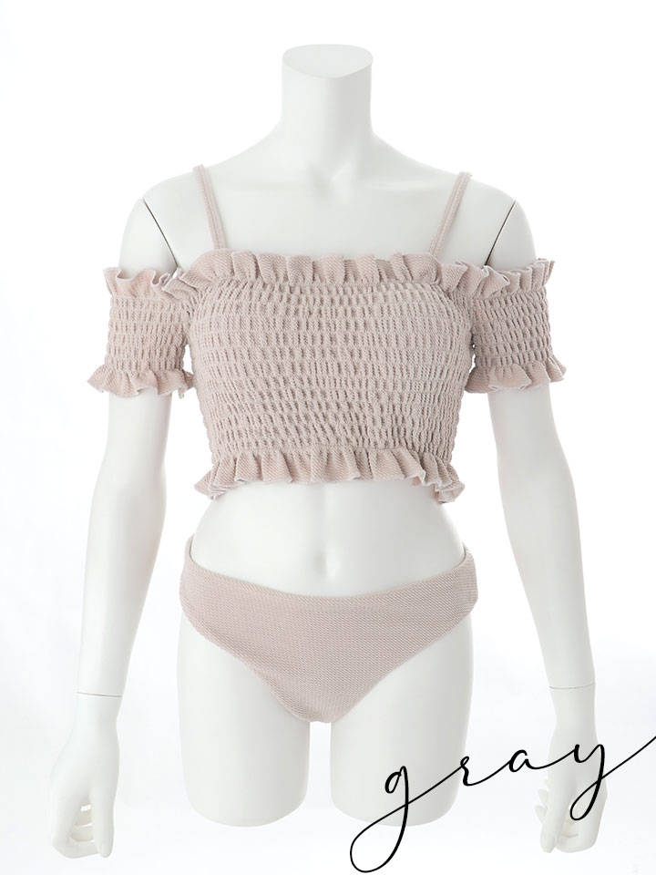 【即日発送】【ビキニ】【水着】シャーリングオフショルビキニ 2点セット [YMT] [M283dzc-GY-25PO]