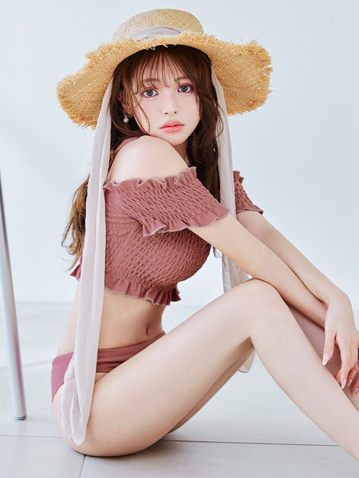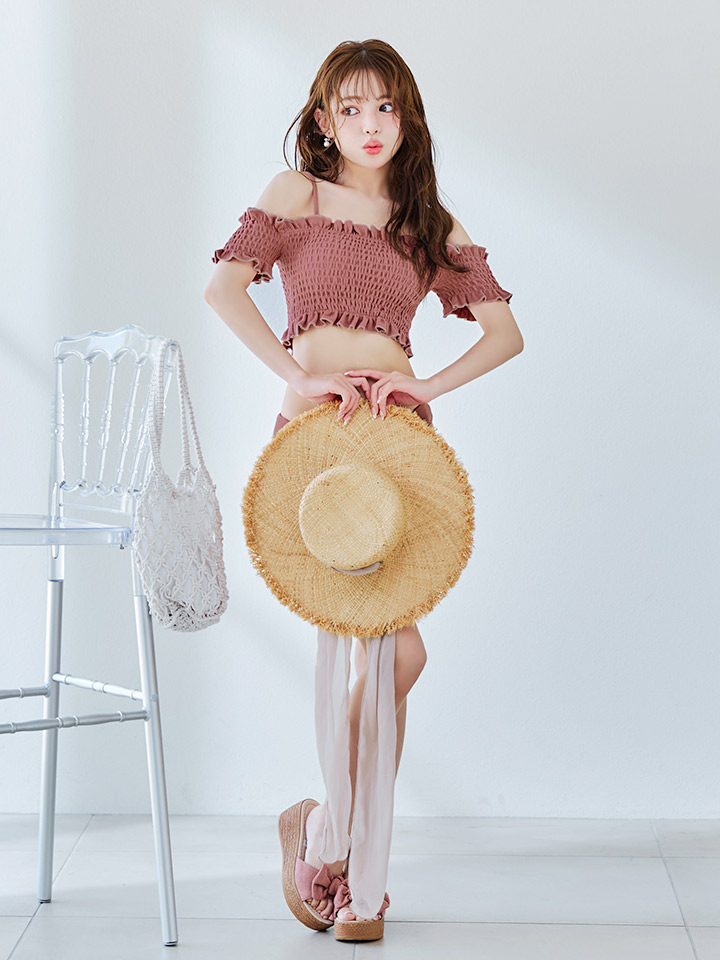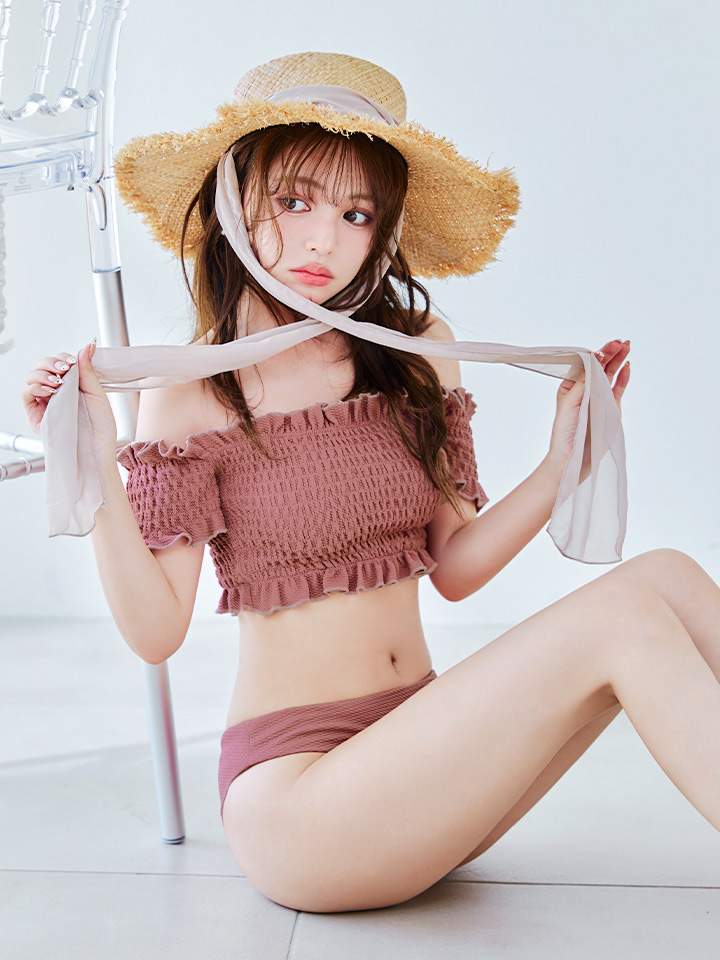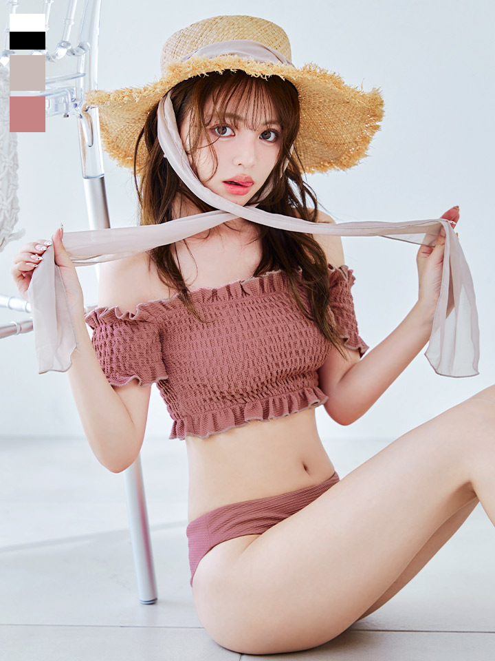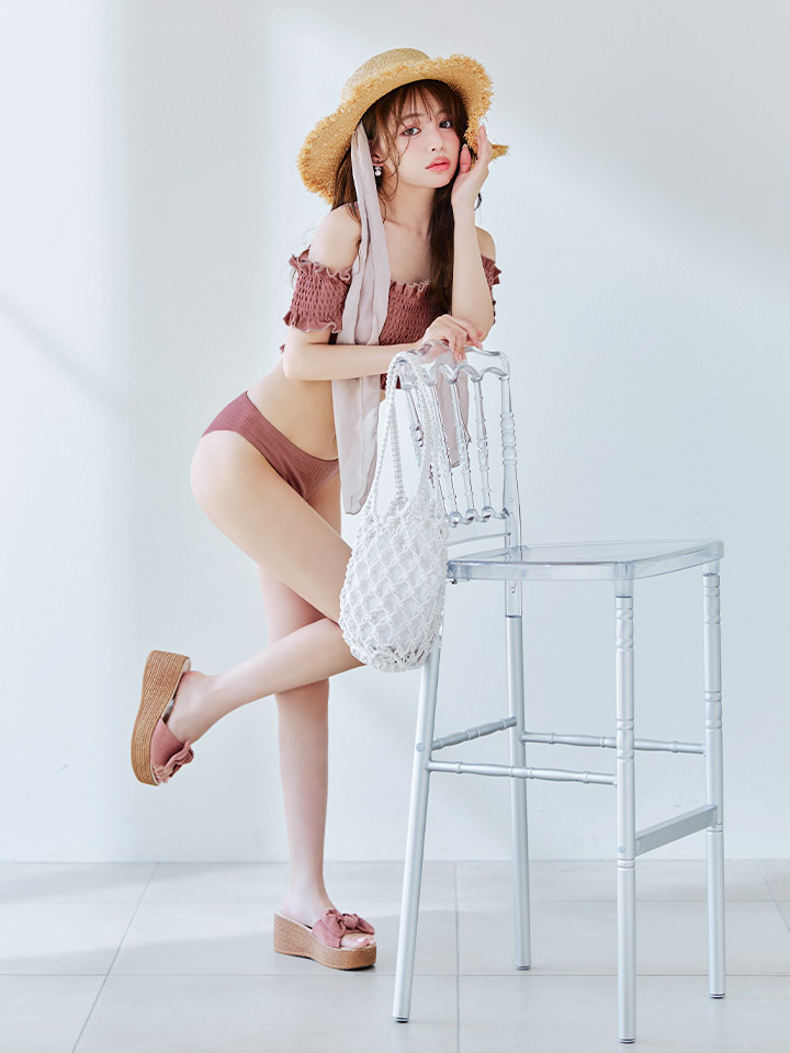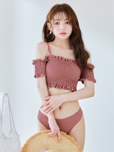 二の腕を華奢見せして、ガーリーにスタイルアップも狙える万能ビキニ!
