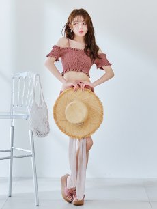 フェミニン度満点のシャーリングオフショルトップスでラブリーに♥