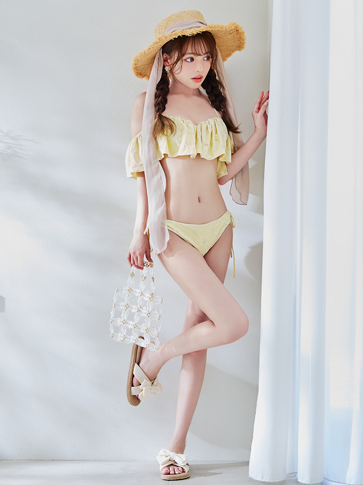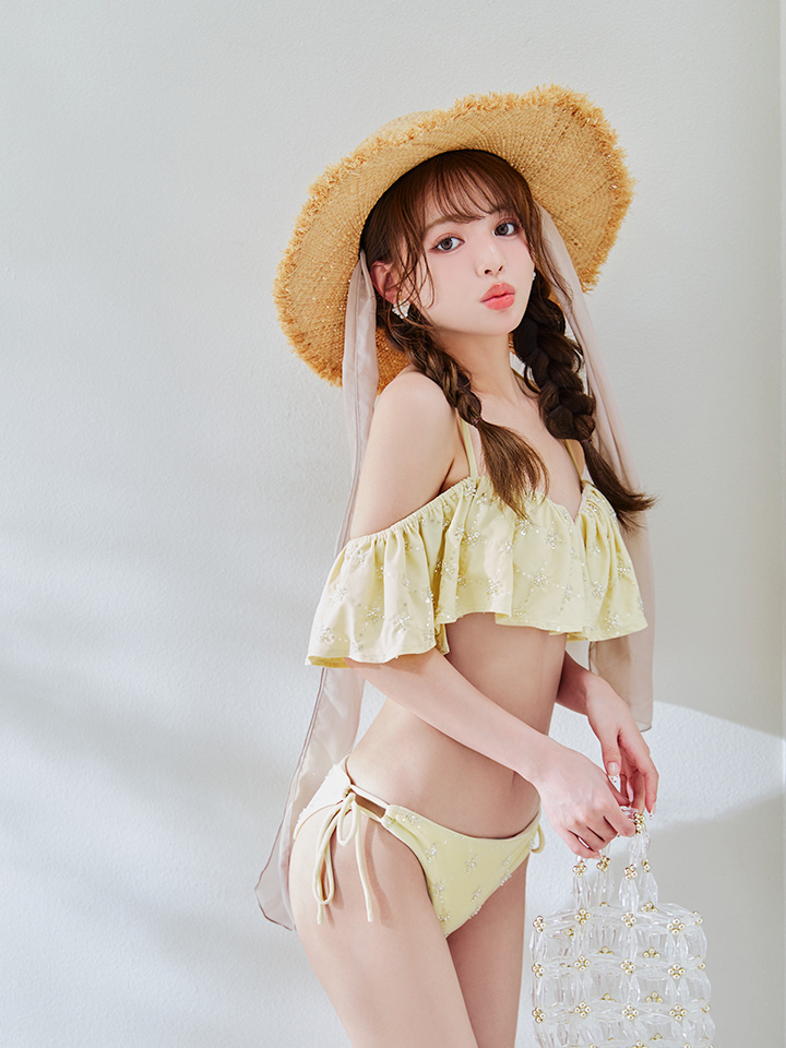 【即日発送】【ビキニ】【水着】ビジューオフショルダーフリルビキニ 2点セット[YMT] [M266dz-Y-25PO]