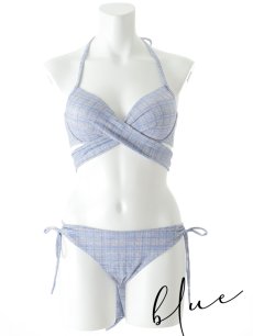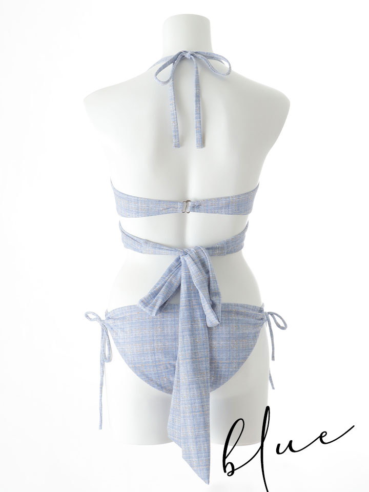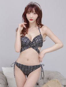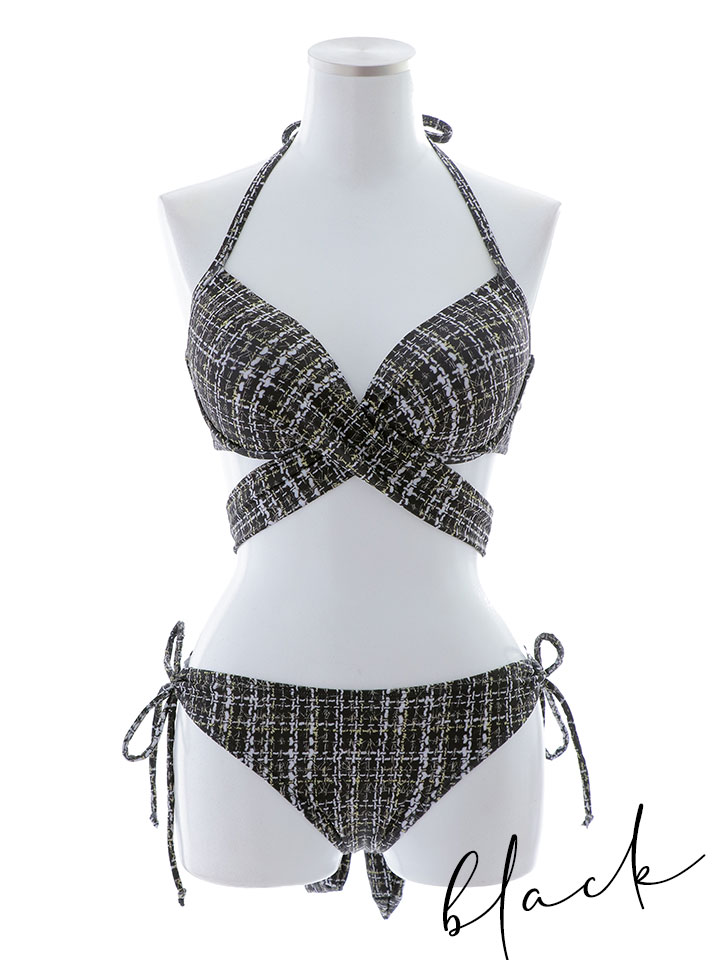 【即日発送】【ビキニ】【水着】ツイードプリント バッククロスリボン クロスビキニ 2点セット[YMT] [M193dzj-25PO-BL]